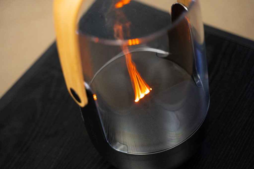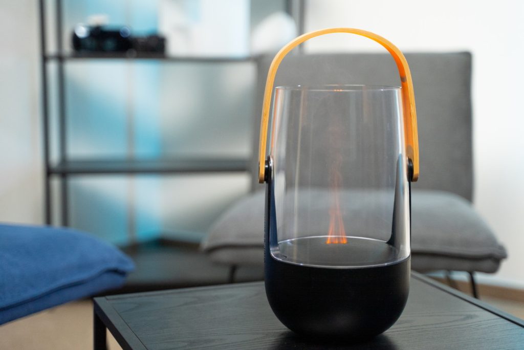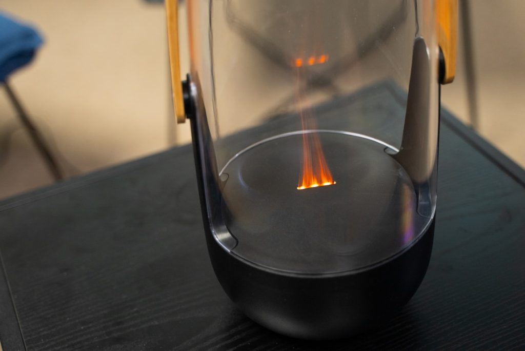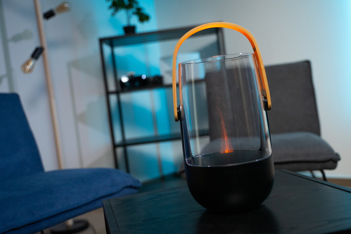 Nejde o skutočný plameň. Lampáš je v skutočnosti ultrazvukový difuzér, z ktorého sa odparuje voda a jemná para je podsvietená svetlom. Takto dosiahnutý efekt plameňa nehreje, nehrozí popálenie a tiež požiar.
