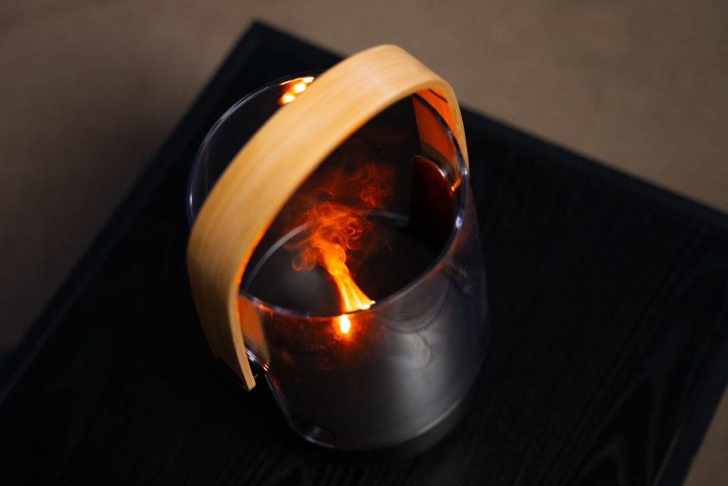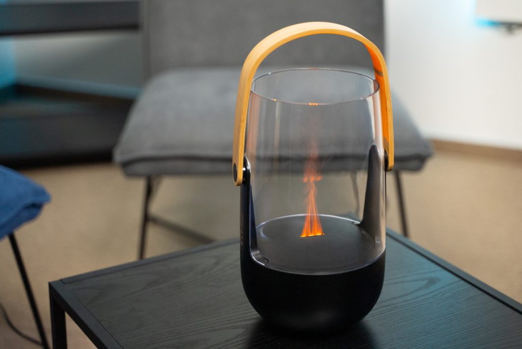Do spodnej časti zariadenia treba naliať vody s esenciálnymi olejmi (nádrž Sophie má kapacitu 100 ml, Sophie Little 50 ml) a po zapnutí začne blkotať decentný oranžový “plameň”, ktorý výrobca nazýva Amber Light.