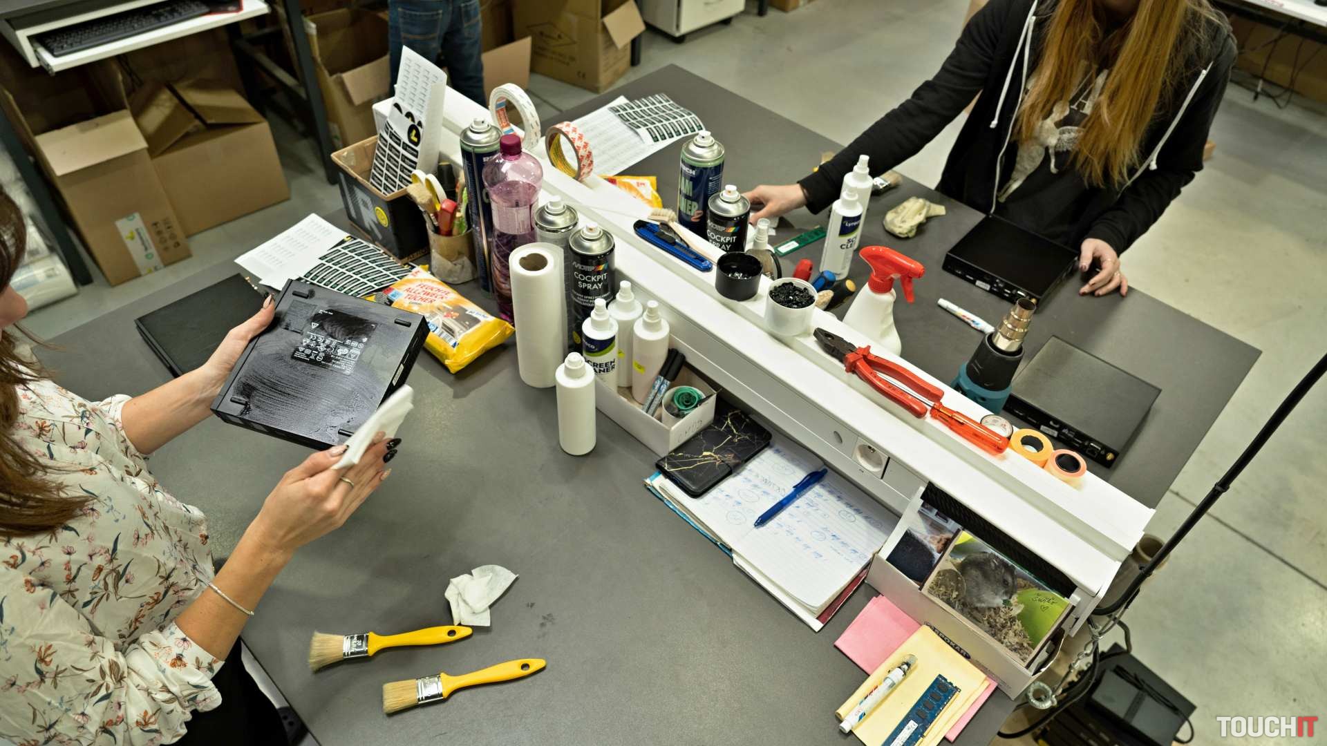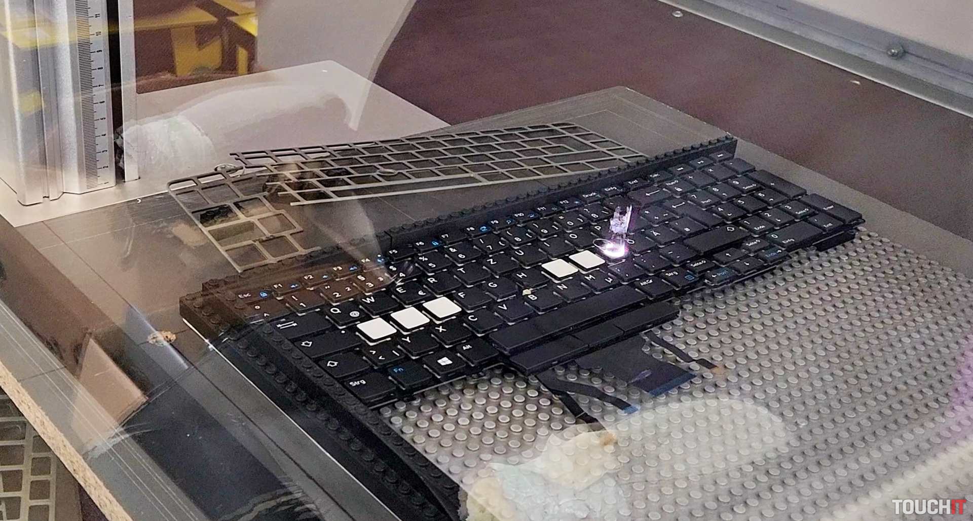 Notebook ešte prechádza renováciou povrchu a potlače. Môže totiž nastať situácia, že notebook prišiel na renováciu z inej krajiny než je tá, do ktorej následne smeruje. Ide o kombináciu lasera a tlače, ktorá sa realizuje v špeciálnej miestnosti.