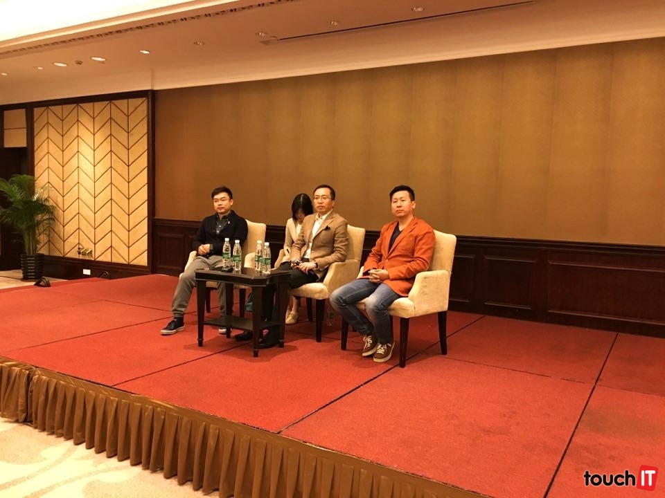 Predstavitelia Honoru počas stretnutia. V strede prezident spoločnosti George ZhaoVynovené smartfóny a 1 Gbps router