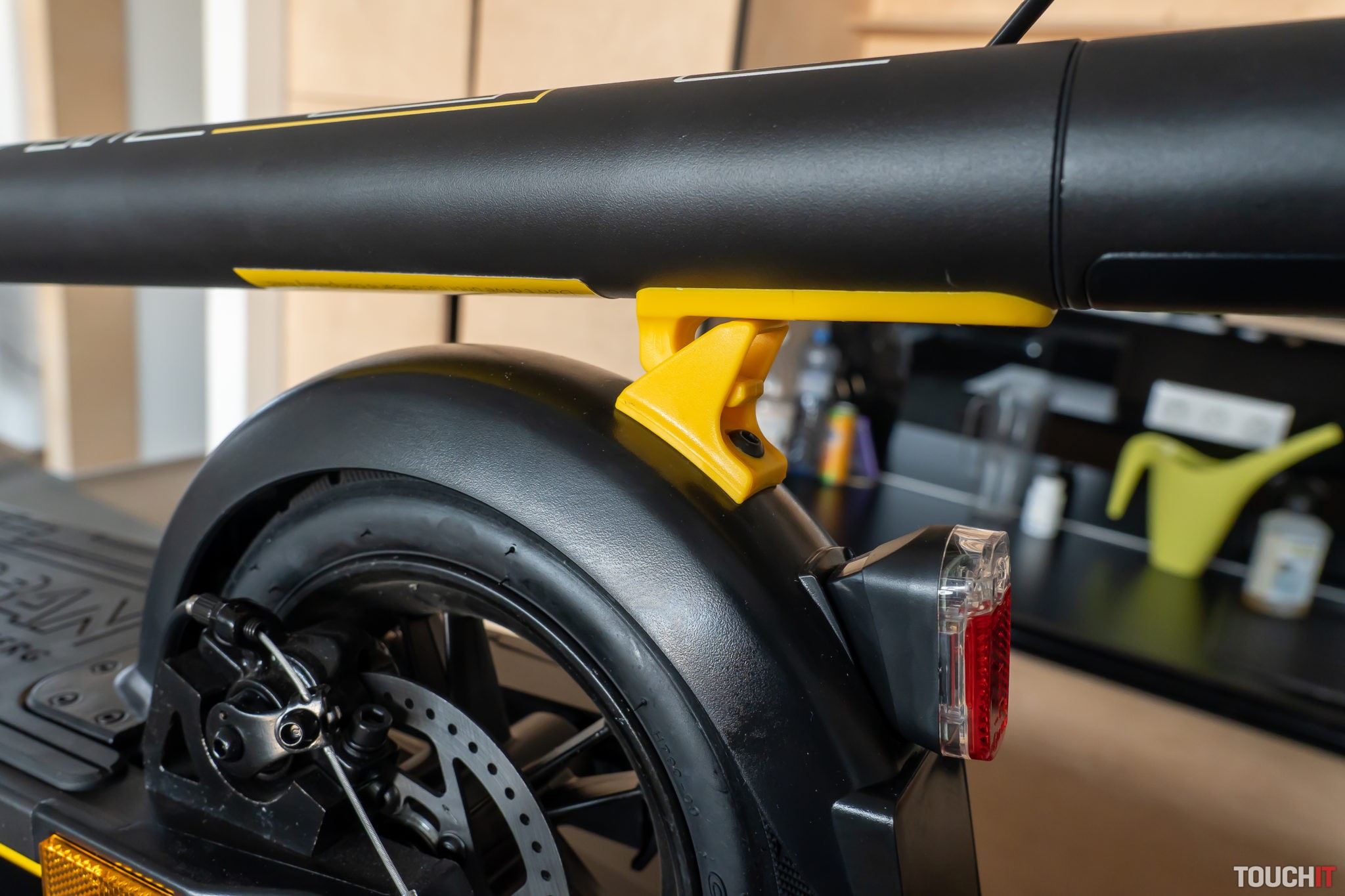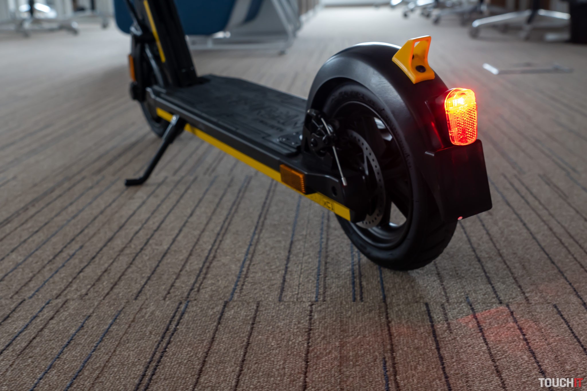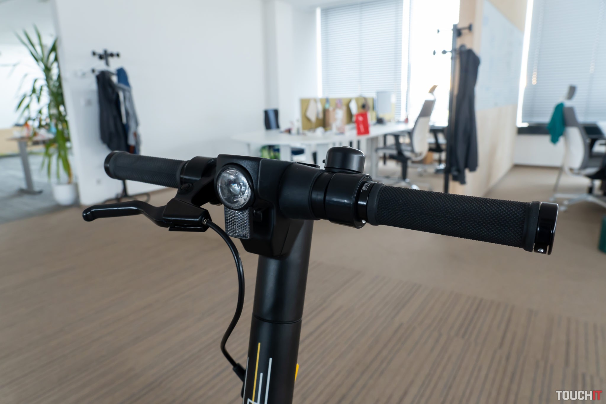 Osvetlenie je vpredu (biele) a vzadu (červené), zapína sa krátkym potlačením zapínacieho tlačidla kolobežky. Dlhé potlačenie tohto tlačidla prepína medzi rýchlosťami, pričom existujú dva stupne. Prvý má obmedzenie do zhruba 12 km/h a zaradený je primárne pri každom zapnutí kolobežky. Druhý stupeň nemá žiadne obmedzenie a rýchlosť pohybu na kolobežke sa blíži k 25 km/h. Príkon elektrického motora je 300 W a na kolobežke je vidieť, že je to nemecká výroba. Šikovný je aj hák na zavesenie nákupnej tašky na kolobežku. Odoláva vonkajšiemu prostrediu, jazdiť môžete aj v daždi či umývať striekajúcou vodou (IP X4). Počas jazdy vidíte na displeji aktuálnu rýchlosť a zostávajúcu kapacitu batérie.