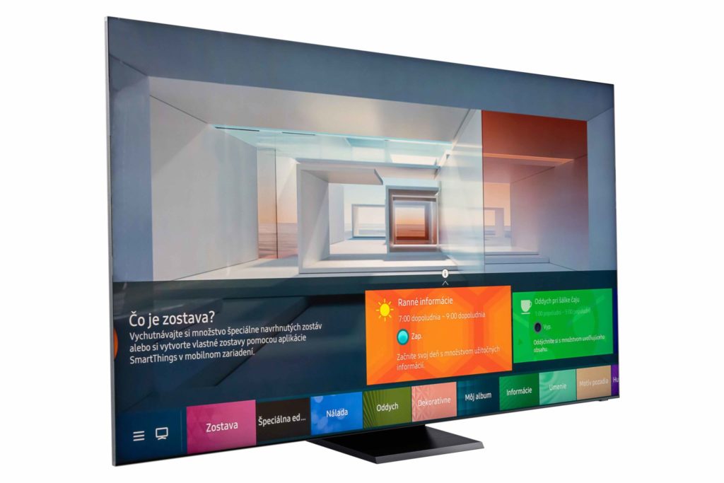 Áno, na inštaláciu je dobré mať pri sebe mobilný telefón, ktorý máte pripojený na domácu Wi-Fi a streamovacie služby ako aj sociálne siete a YouTube. Televízor Q950TS je súčasťou Samsung SmartThing vecí a z tejto aplikácie ho aj ľahko nainštalujete. Pritom nepotrebujete zadávať heslo do Wi-Fi siete alebo do Samsung konta, to sa prenesie automaticky zo smartfónu. Nastavenia televízora sa dajú presunúť z cloudu z vášho starého televízora. Spojenie medzi televízorom a mobilom funguje aj ďalej. V rámci služby MultiView môžete prenášať obraz z displeja televízora na smartfón a opačne, ďalej je tu možnosť vidieť obraz a súčasne komunikovať na sociálnych sieťach. V rámci režimu Ambient Mode+ si môžete nastaviť rôzne oddychové motívy napr. s umeleckými dielami alebo prezentovať si tu vaše fotografie nafotené smartfónom. Novinkou sú predvolené zostavy ako je Dobré ráno, či Dobrý večer. Vtedy sa vám napr. ráno o 7. hodine zapne automaticky televízor, zobrazí predpoveď počasia spolu s údajom o čase. K tomu bude znieť príjemná hudba.