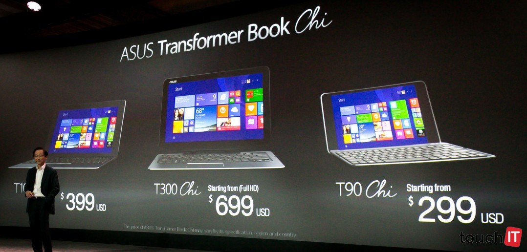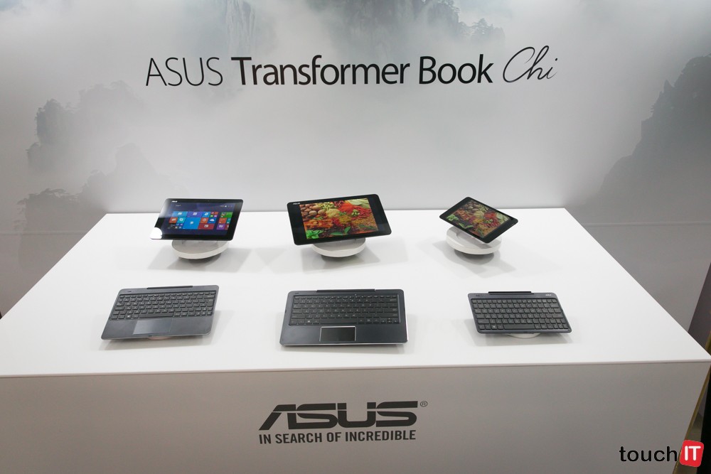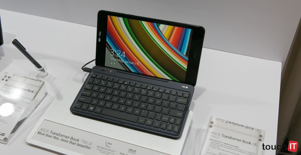 Okrem tohto zariadenie sme si pozreli aj modely s menšou uhlopriečkou. Aj v tomto prípade ide o zariadenia 2 v 1 s mechanickou klávesnicou. ASUS Transformer Book T90 Chi v cene od 299 USD a Transformer Book T100 v cene od 399 USD. T100 Chi má pritom 10,1 palcový a T90 Chi zase 8,9-palcový displej. Transformer Book T90 Chi môže byť celkom predajným hitom, je to také maličké zariadenie napr. na dovolenku, aby ste zostali v kontakte s prácou a známymi, pričom máte k dispozícii operačný systém Windows. Hmotnosť tabletu je len 400 gramov, spolu s dokovacou stanicou je to 750 gramov. Vo výbave T90 Chi je štvorjadrový procesor Intel Atom Z3775, limitom môže byť len 2 GB RAM a SSD sa bude ponúkať v kapacite 32 GB alebo 64 GB. Na rozšírenie pamäťového priestoru je k dispozícii microSD slot. Predná kamera má rozlíšenie 2 MPx, zadná 5 Mpx.