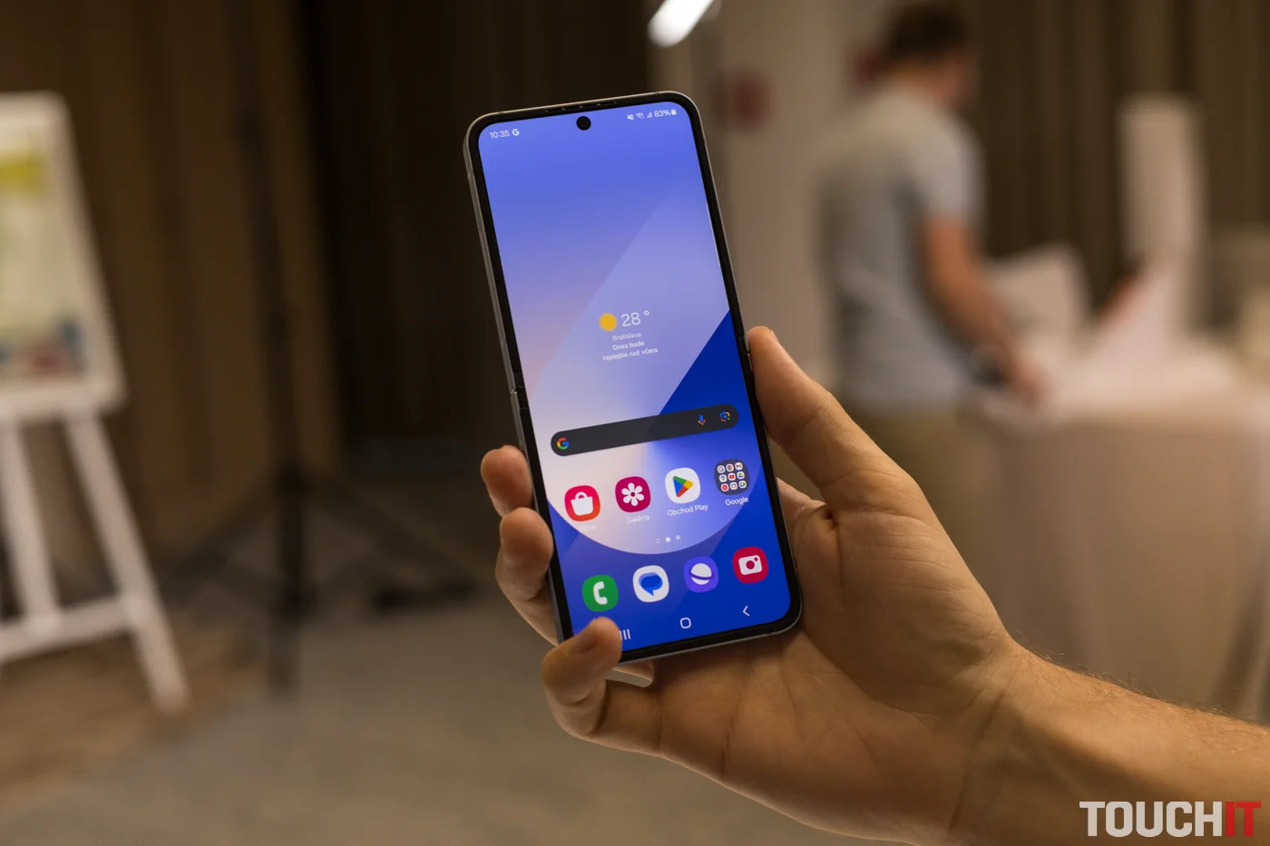 Telefón Galaxy Z Flip6 takto realizovanú selfie fotografiu zadným fotoaparátom všemožne podporuje. Jednak si môžete telefón položiť napr. na stôl a na vonkajšom displeji (FlexWindow) ihneď vidíte, ako bude vaša selfie fotografia vyzerať. Povel na odfotenie môžete dať napr. zamávaním rukou. Je to veľmi jednoduché a výsledky sú vynikajúce.