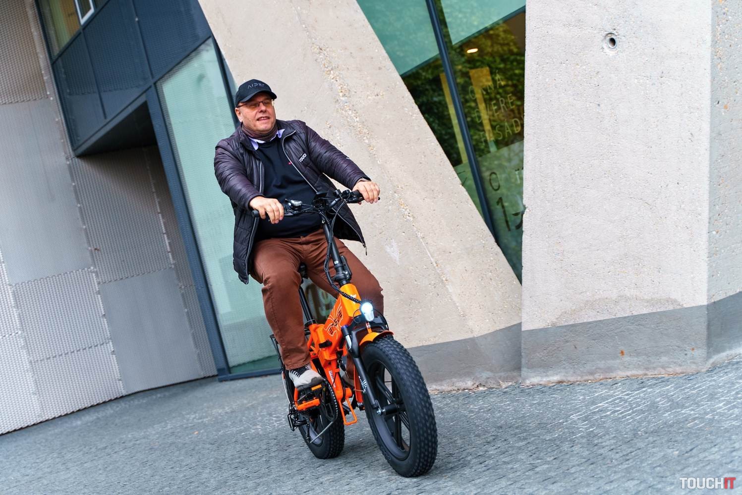 Vpredu je teleskopická vidlica z uhlíkovej ocele so zdvihom 100 mm, ktorá sa dá aj fixovať. Kolesá sú 20-palcové so šírkou 4 palce a pneumatiky sú v štýle BMX. Otázka určite bude, kde ich budete po určitom čase zháňať. Ale zatiaľ sa zdá, že EP-2 Pro sa nezľakne ani náročnejšieho trailu. Kritickým bodom sú ale mechanické kotúčové brzdy Tektro M280. Pri zjazde z kopca sme nešli úplne naplno hlavne kvôli tomu, že na brzdenie bolo treba dlhšiu trať. Nabíjanie na 30 % vybitej batérie nám trvalo 5 hodín, na celkové nabitie treba 8 hodín.
