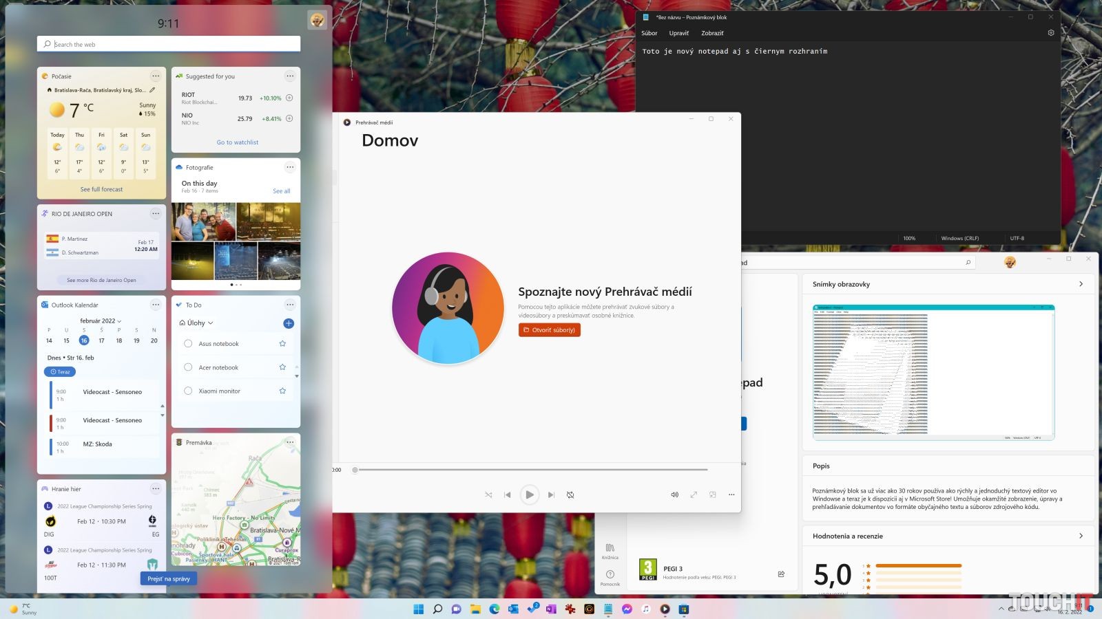Nainštalovanie veľkej februárovej aktualizácie si okamžite všimnete pri pohľade na panel úloh – ikona s widgetmi sa presunula do ľavého spodného rohu a zobrazuje informácie o aktuálnom počasí.