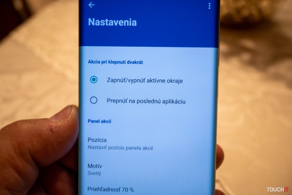 Potom ako zapnete telefón, jedno z odporúčaní je nastaviť si EDGE Touch. Je to panel vybraných nástrojov, ktoré ľahko vyvoláte dvojitým poklepaním na vybranú časť hrany telefónu. A v tomto prípade to funguje spoľahlivo, u iných výrobcov táto funkcia bola často „nevyvolateľná“.
