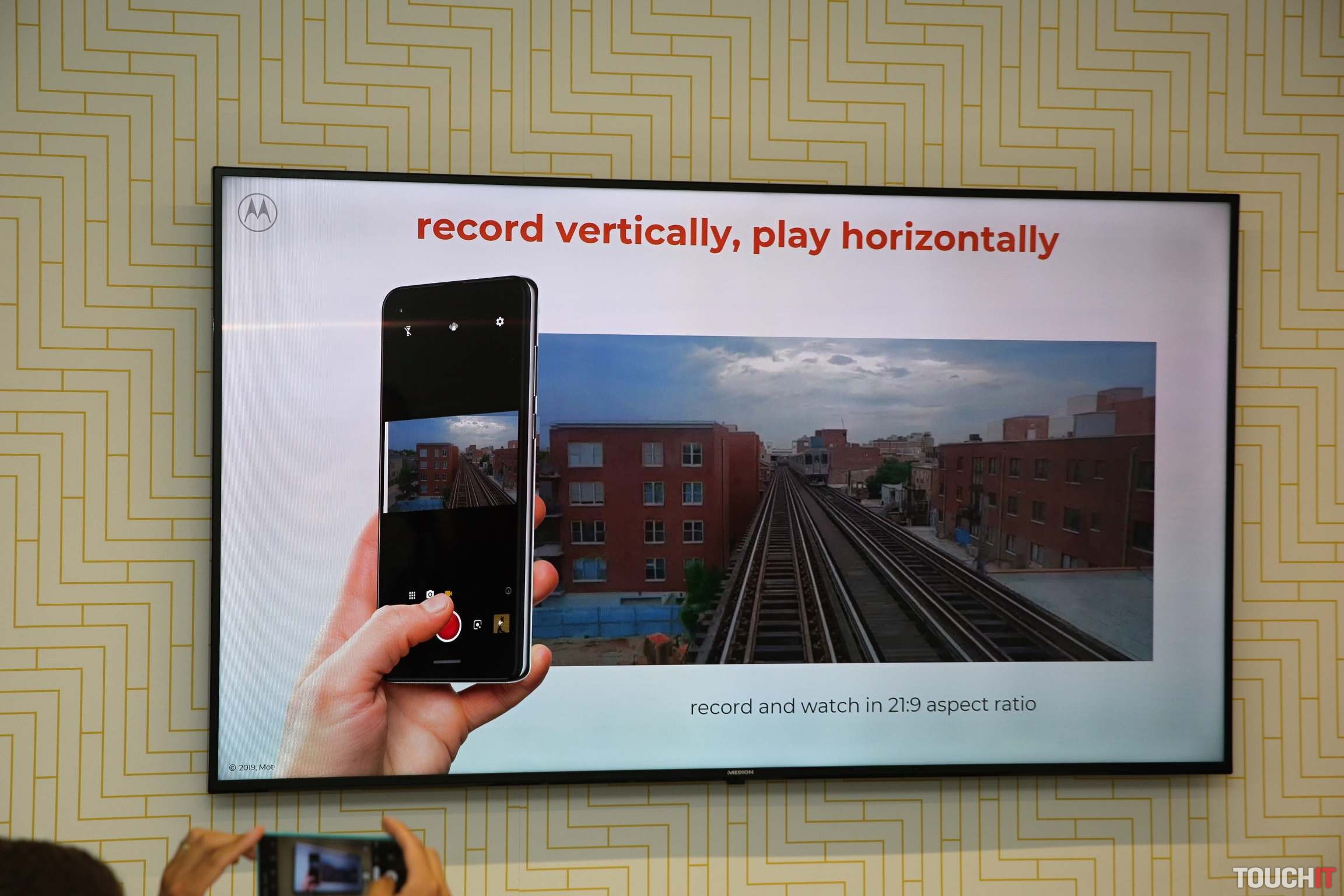 Zadná strana má tri objektívy z toho jeden špeciálne zameraný na nakrúcanie akčných videí. Zostava na fotenie je teda v konfigurácii 12 + 5 Mpx. Motorola nazýva svoje netradičné rozšírenie jasne: „Record vertically, play horizontally”.