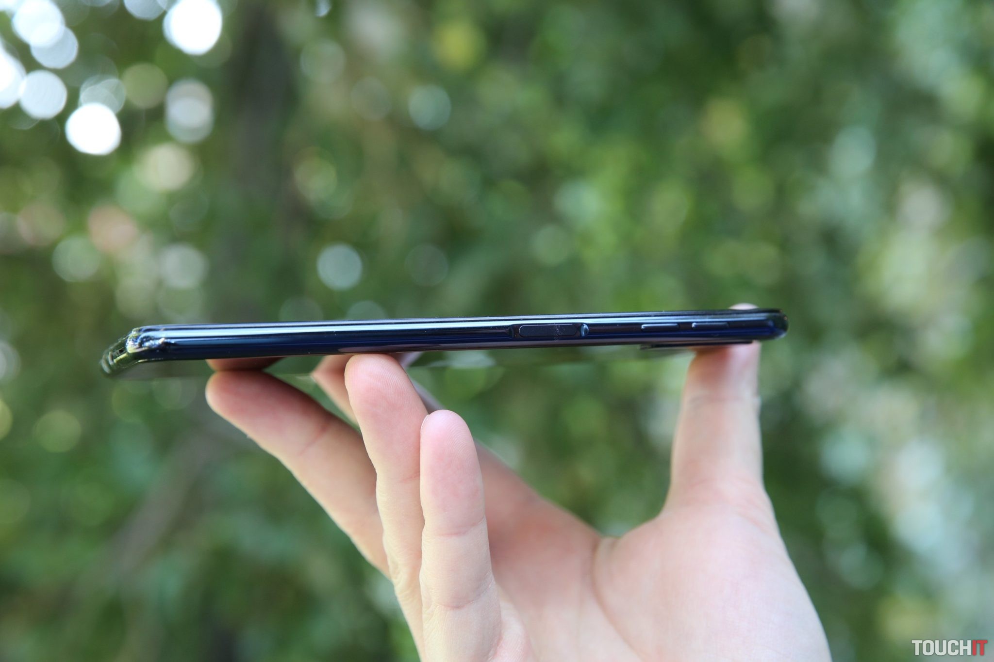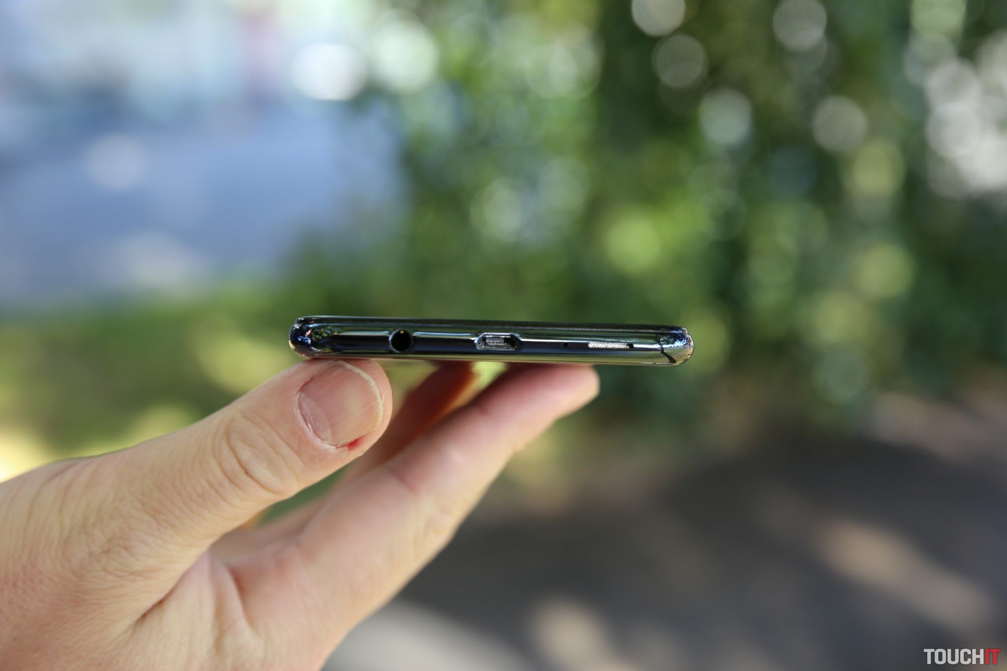 Dobre sa drží v ruke a je ľahký. Toto bol náš prvý dojem po vybalení zo škatule. Lesklý povrch na zadnej strane je tvorený z 2.5D skla. To znamená, že sa telefón kĺže, kde sa mu to len trochu dá. Na stehne sa neudrží a pre istotu zoberte vodováhu a zmerajte si rovnosť vášho stola, inak budete mať telefón čoskoro na zemi.