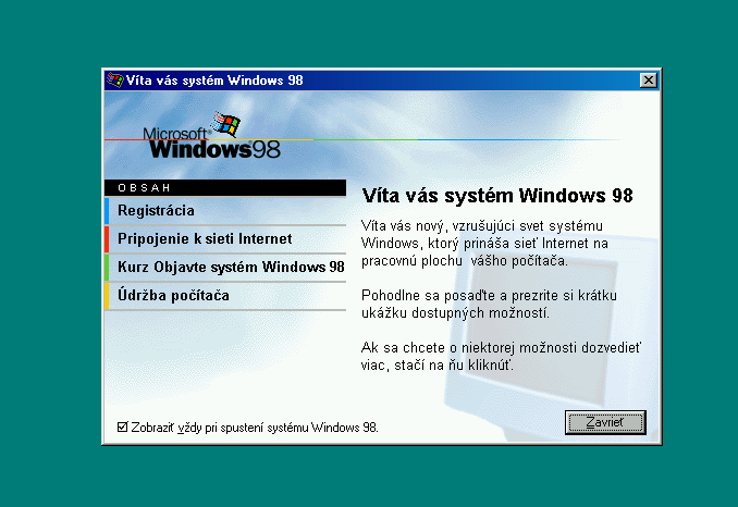 Prvé pravidlo Windows 98 je, že nikto nesmie hovoriť o jeho startup pesničke