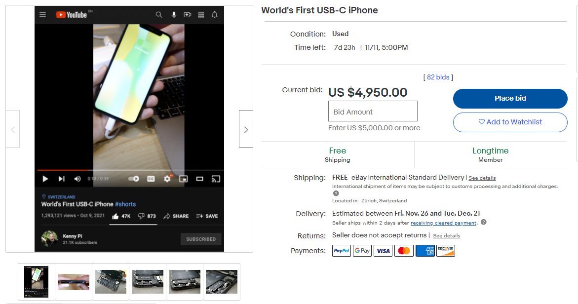 Krátko po predstavení sa ten istý telefón dostal do dražby na eBay. V čase písania článku bola jeho cena na hodnote takmer 5000 dolárov (4.11.2021 o 10:00 je cena už 80 000 dolárov).
