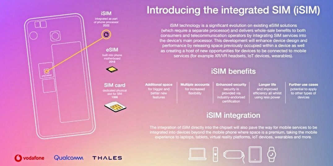 Novinku na spoločnej udalosti odprezentovali spoločnosti Qualcomm, Vodafone a Thales. Počas predstavenia bol k videniu prvý funkčný smartfón na svete, ktorý túto technológiu integrovanej SIM karty využíval. Pre účely dema sa použil Samsung Galaxy Z Flip3 5G, ktorý bol poháňaný čipovou sadou Snapdragon 888 5G a systémom Thales iSIM. Prvé správy o tejto technológii sme priniesli ešte v roku 2018.