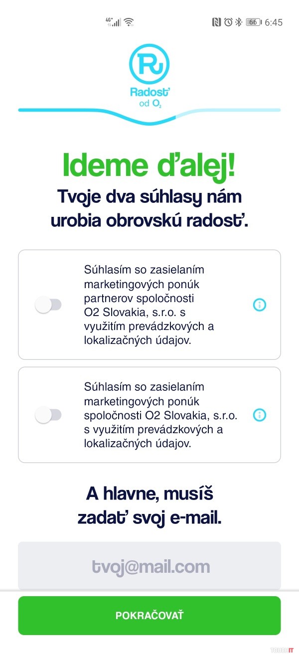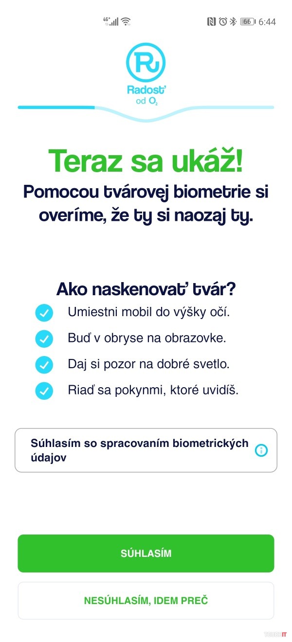 Ďalším krokom je tvárová biometria. Telefón pomocou predného fotoaparátu naskenuje vašu tvár – podobne, ako keď si aktivujete funkciu odomykania tvárou. Ak všetko prebehne v poriadku, aplikácia vám to oznámi. V ďalšom kroku treba zadať emailovú adresu, s marketingovými ponukami nemusíte súhlasiť.