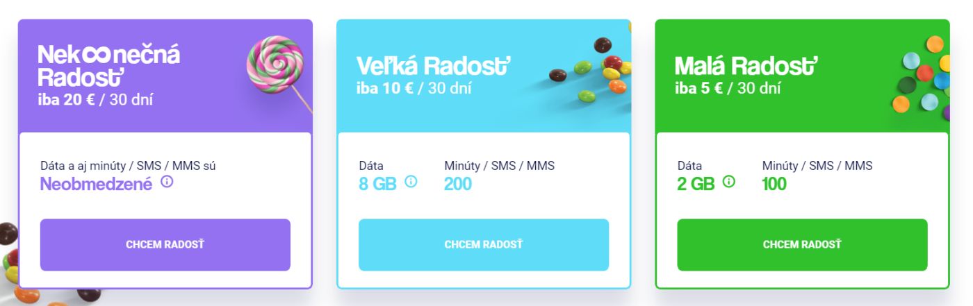 Radosť ponúka tri programy s platnosťou 30 dní: