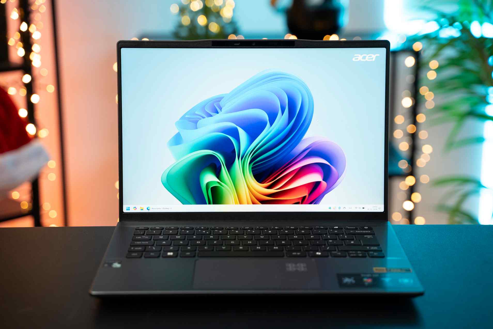 Tým, že ide o počítač z tejto série Copilot, pravý kláves Ctrl chýba a je nahradený novým klávesom. Inak je klávesnica štandardná s podsvietením a dobre sa používa. K dispozícii je možnosť vypnúť mikrofón priamo cez klávesnicu a v rámci videokonferencií alebo súkromia oceníte aj fyzický kryt webovej kamery.