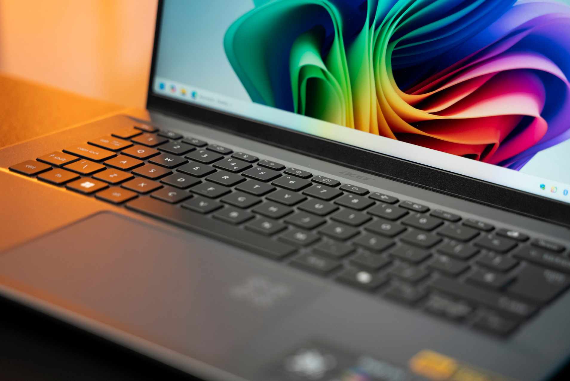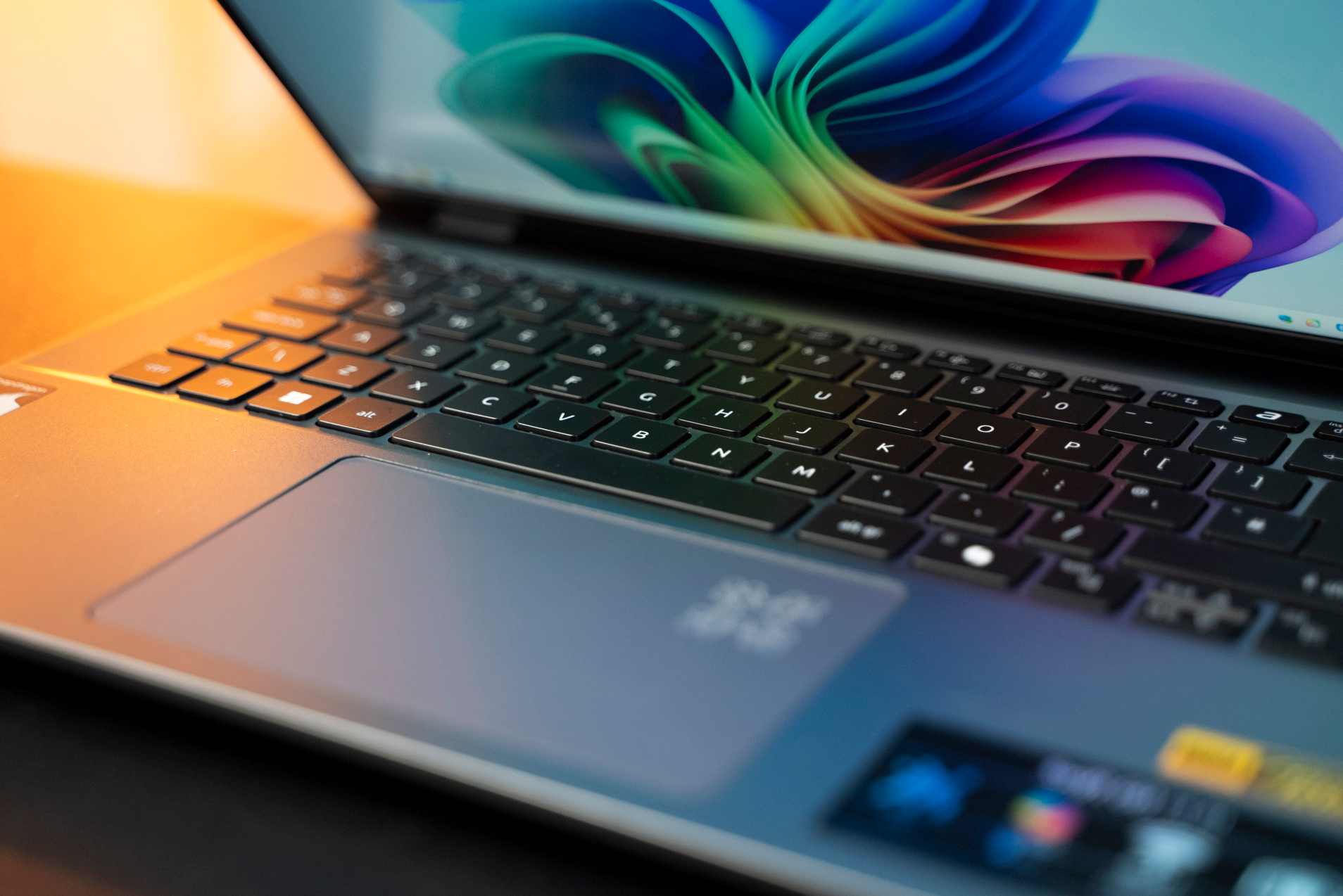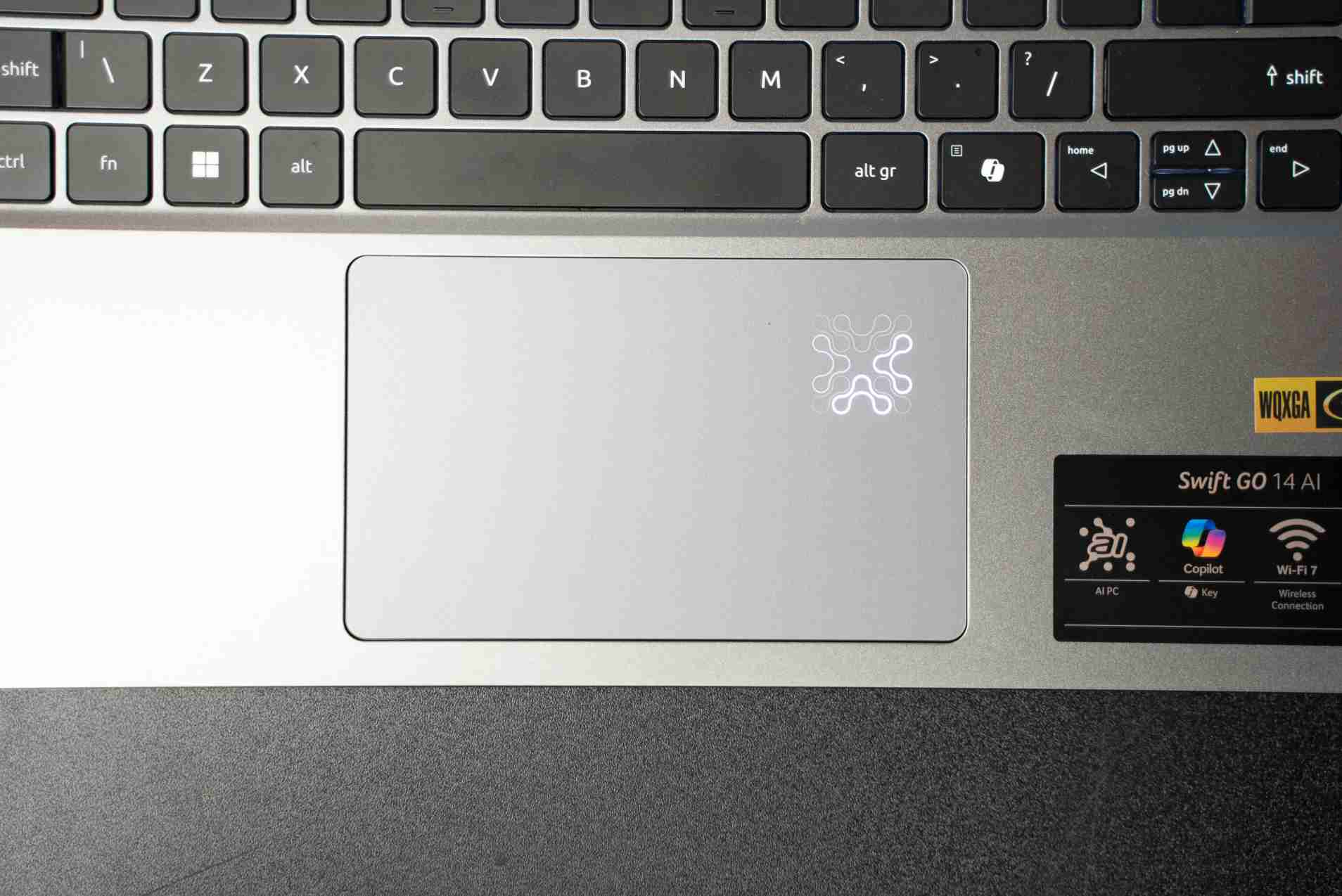 Špecialitou je touchpad, ktorý má v pravom hornom rohu obrazec signalizujúci využívanie AI. Akonáhle bude notebook využívať svoj hardvér na spracovanie AI, bude sa tento prvok animovať. Koho by to rušilo, dá sa svetelný efekt vypnúť.