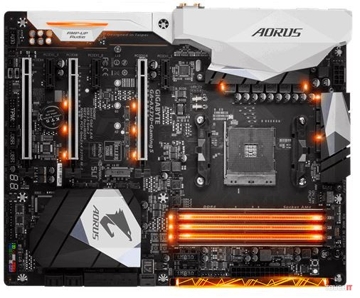 Najvyššie stoja dosky s čipsetom X370. Celkom logicky, písmeno X je pri väčšine produktov z počítačového sveta skratkou pre „extreme“. X370 tak predstavuje to najlepšie, do čoho môžete aktuálne nový Ryzen posadiť a prináša aj najviac priestoru pre budúci upgrade a škálovanie výkonu. Pre grafické karty sú k dispozícii dva PCI-Express Gen 3.0 sloty a podpora pre Crossfire i SLI. Procesory majú 24 PCIe 3.0 liniek, z toho štyri sa používajú pre pripojenie k čipsetu. Samotný X370 ponúka ďalších osem liniek, ktoré slúžia pre pripojenie diskov a vstupno-výstupných rozhraní. Ak teda správne počítame, dvojica grafík bude fungovať v konfigurácii po osem liniek. Štandardne dosky s X370 ponúkajú šesť USB 3.0 a šesť USB 2.0 portov, takisto štvoricu S-ATA 6 Gb/s.