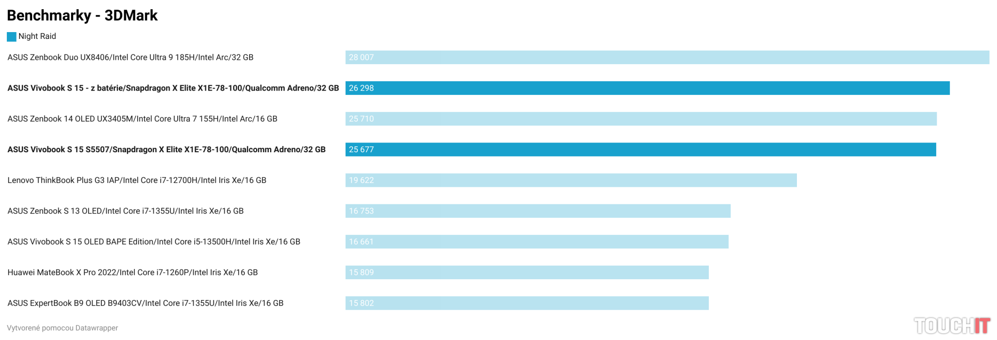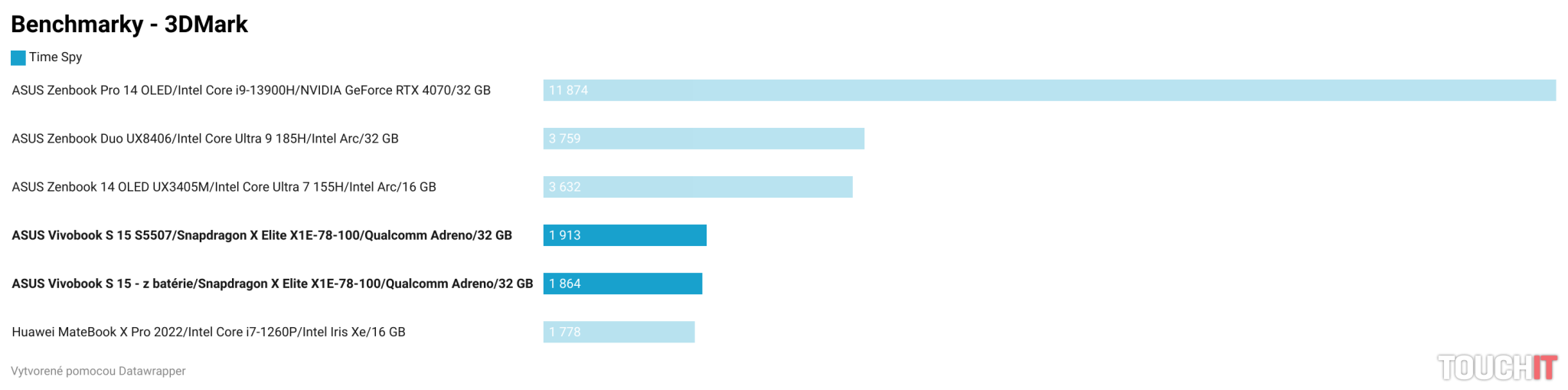 Najmä v prípade hier je to veľká škoda, keďže Snapdragon X Elite má dobrý grafický výkon – za procesormi Intel Core Ultra síce zaostáva, ale mohol by si poradiť s mnohými hrami a zároveň má dobrú energetickú efektivitu. Notebook je počas hrania a v záťaži takisto výrazne tichší v porovnaní s dnešnými procesormi od Intelu či AMD.