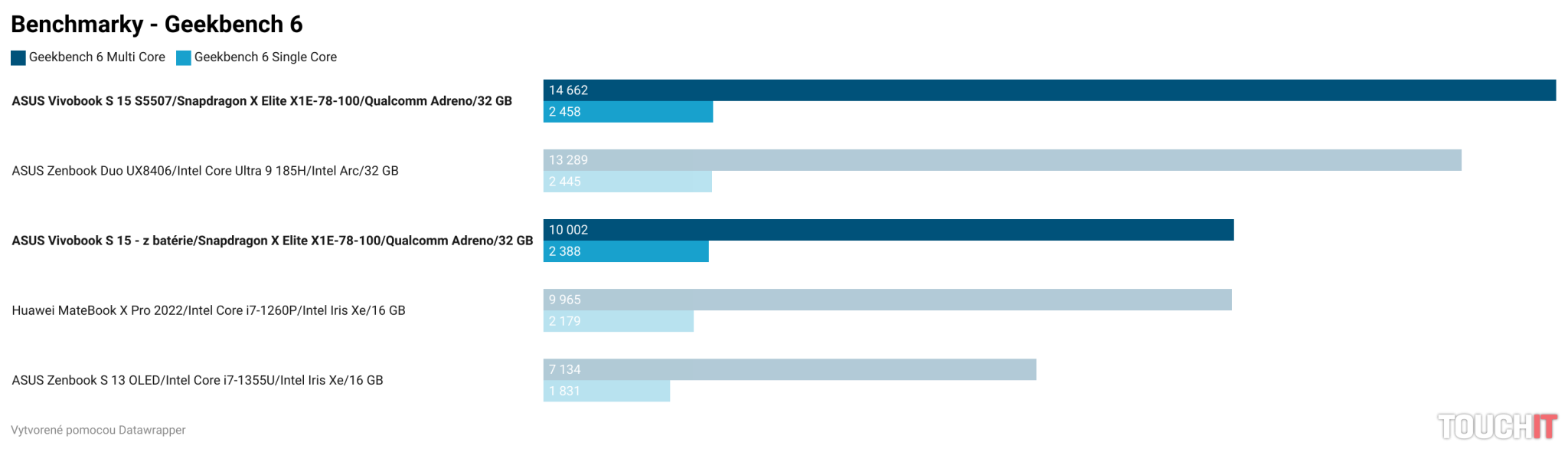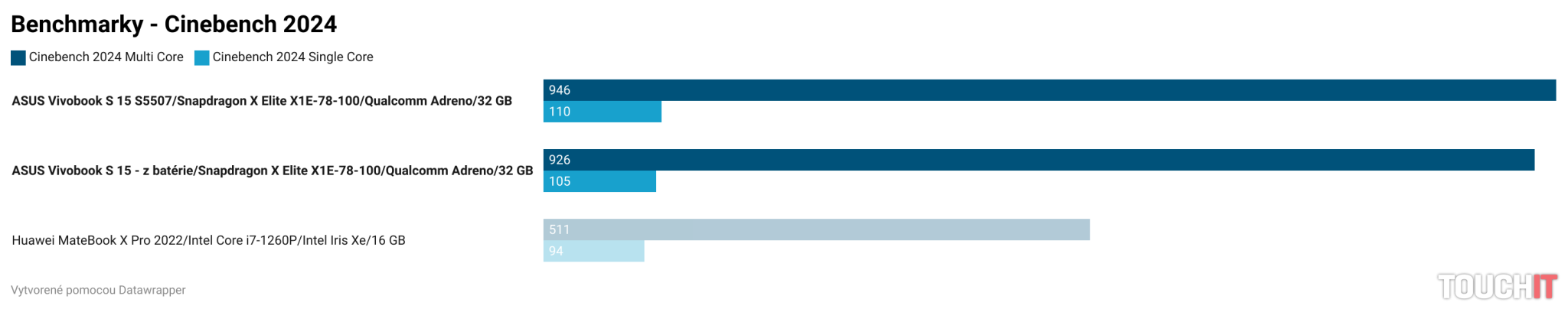 Snapdragon X Elite, ktorý poháňa Vivobook S 15, má modelové označenie X1E-78-100. Je to najmenej výkonná verzia procesorov X Elite. Aj napriek tomu ponúka skvelý výkon, avšak najmä v aplikáciách, ktoré sú už optimalizované pre ARM architektúru.