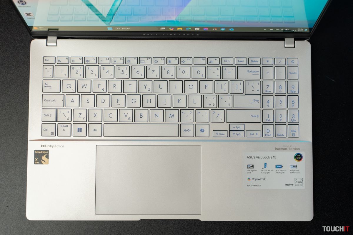 Vivobook S 15 som testoval v konfigurácii s 32 GB RAM a 1 TB úložiskom. Jeho cena je 1539 eur. Keď som porovnával aktuálnu ponuku Copilot+ počítačov na Slovensku, tento notebook od ASUS-u je aktuálne najlacnejší v rámci modelov s 32 GB RAM.