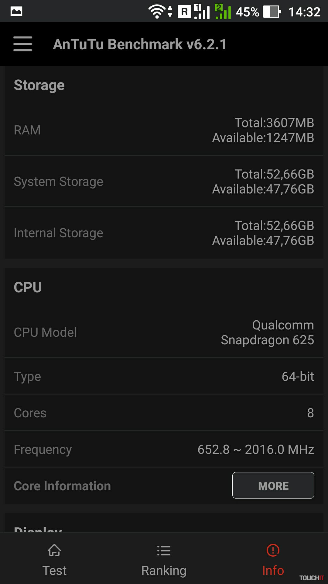 Procesor | Qualcomm Snapdragon 625, osem jadier |