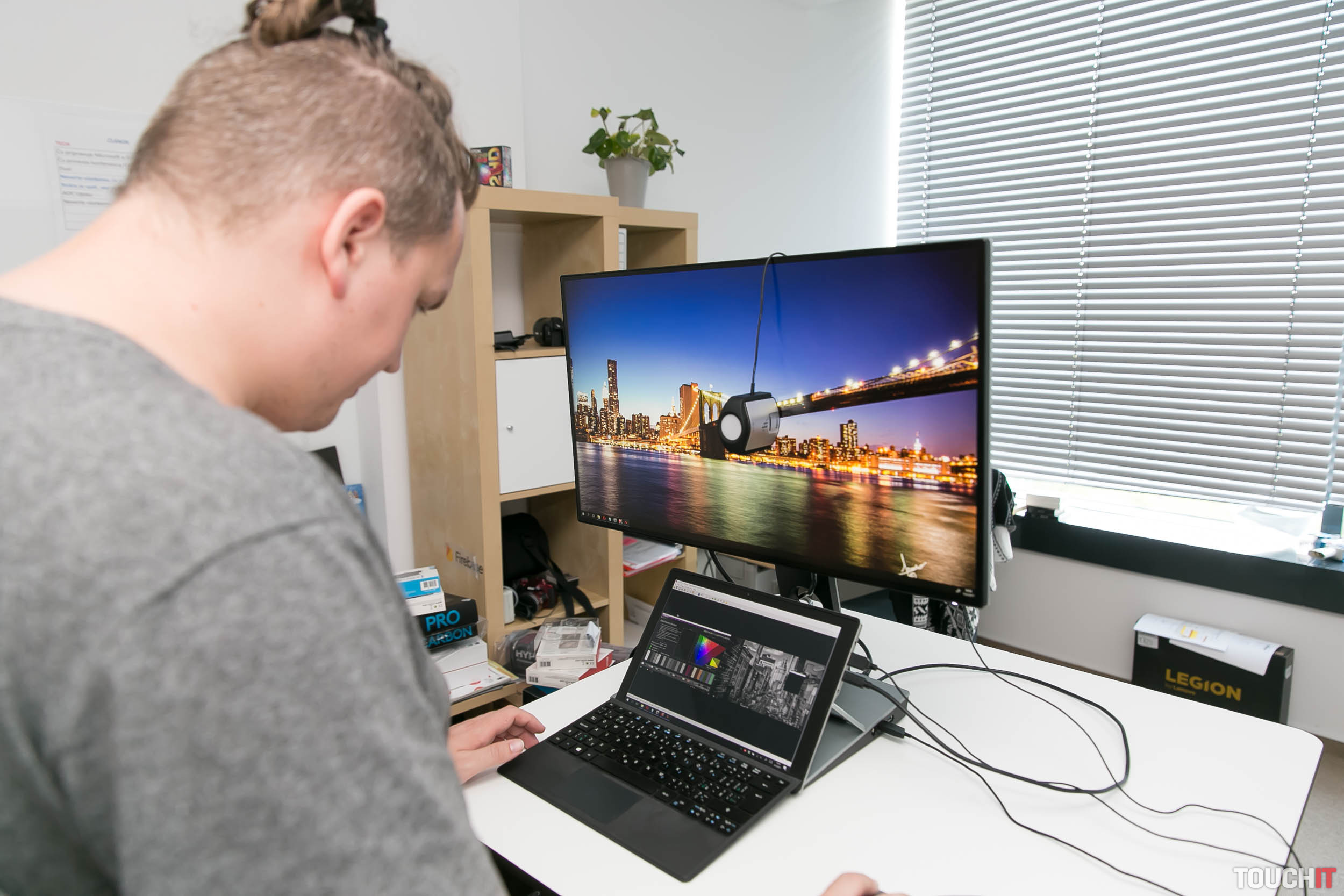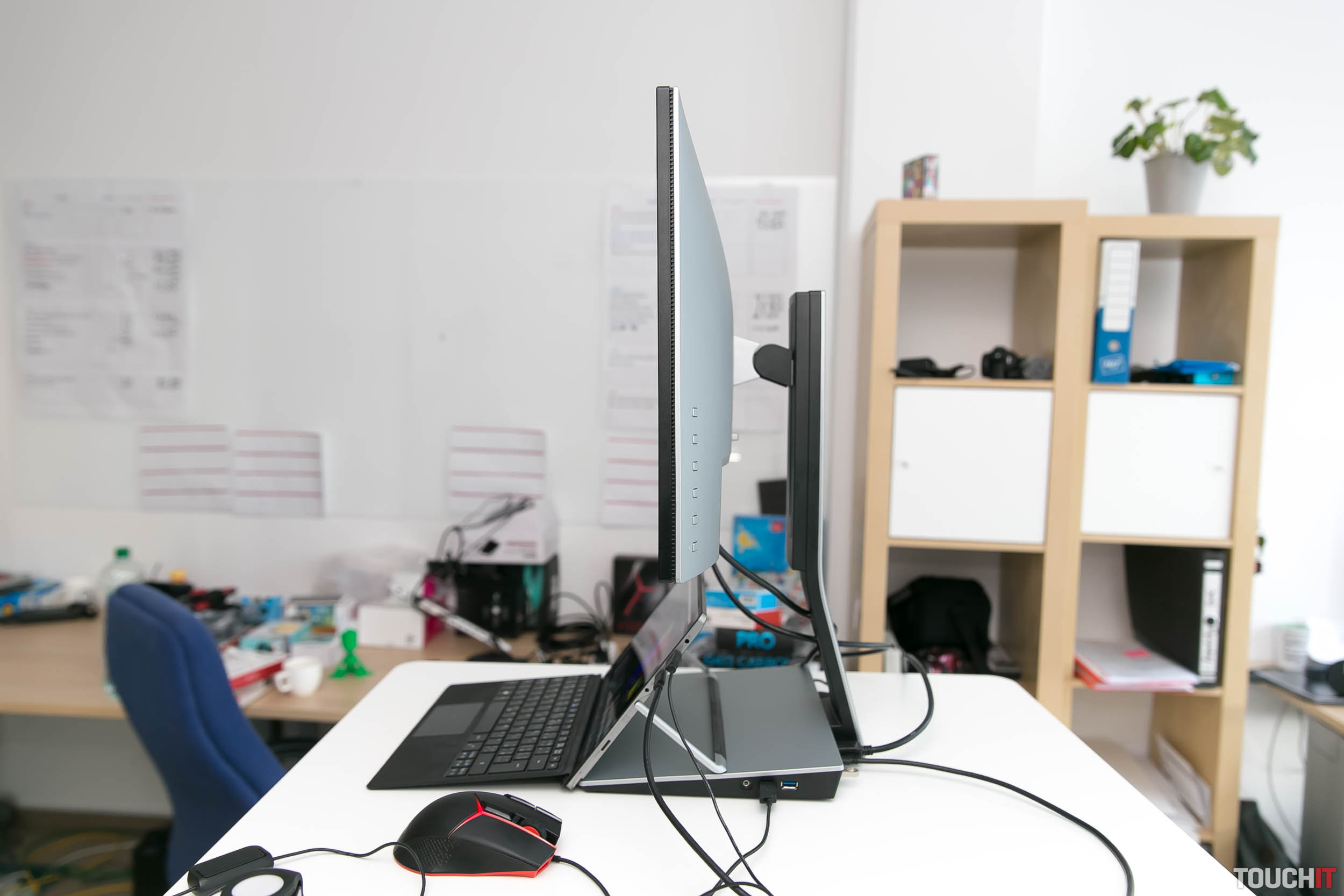 Praktická dokovacia stanica aj bohatá konektivita Toto riešenie má výhody – notebook alebo tablet pripojíte pomocou USB-C kábla k monitoru a prostredníctvom dokovacej stanice získate nabíjanie notebooku či tabletu počas pripojenia, prístup k štvorici USB 3.0 portov, k ethernetového portu a taktiež aj k 3,5 mm jacku pre slúchadlá. Všetky tieto konektory sú pritom umiestnené priamo v spodnej časti stojana, takže sú pohodlne dostupné a nachádzajú sa zhruba vo výške portov notebooku či tabletu. Je to praktické. Pre porovnanie, monitory obvykle ponúkajú USB huby priamo v oblasti obrazovky a nevyzerá to dobre, keď k nim pripojíte napr. káblovú klávesnicu alebo myš. V tomto prípade ide o praktickejšie aj estetickejšie riešenie. Zároveň ponúka viac funkcií, pretože nabíja pripojené zariadenie s výstupom až 61 W, čo je dobre použiteľné pre takmer všetky zariadenia na trhu. Obsahuje aj extra porty vo forme ethernetu a DisplayPortu. Dokovacia stanica taktiež obsahuje USB-C port na prepojenie doku s počítačom a DisplayPort výstup. Je totiž potrebné prepojiť dokovaciu stanicu s monitorom samotným prostredníctvom DisplayPort kábla. Samotná obrazovka obsahuje DisplayPort vstup aj výstup, HDMI vstup a mini DisplayPort vstup. DisplayPort výstup využijete na pripojenie monitora s ďalšími obrazovkami. Celkovo je možné pripojiť až štvoricu monitorov, avšak kvôli rozlíšeniu je praktické obmedziť počet prepojených monitorov na 2 až 3. Potrebná je podpora technológie MST na každom z nich. Je dôležité spomenúť, že monitor aj dokovacia stanica vyžadujú samostatné napájanie, takže budete potrebovať 2 elektrické zásuvky.Dokovacia stanica je to, čím sa tento monitor odlišuje od konkurencie. Váš notebook či tablet aj nabíja