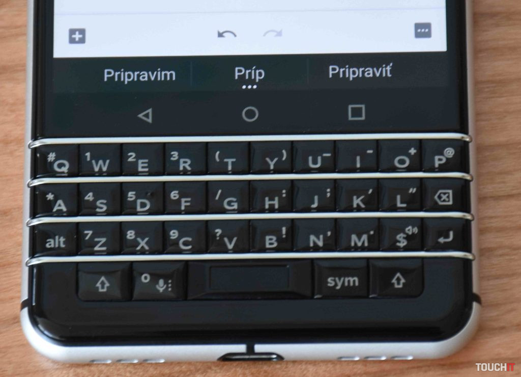 Pod tlačidlami je legendárna hardvérová klávesnica. Je podsvietená a jej podsvietenie sa zapína automaticky. Medzerník je zároveň čítačka odtlačkov prstov a funguje veľmi dobre. Klávesnica má štyri riadky a má štandardné rozloženie. Nájdete tu Enter, dvakrát Shift a jeden Alt. Ak by ste potrebovali, tlačidlom Sym zapnete virtuálnu klávesnicu a tak získate kompletnú súpravu špeciálnych symbolov, Emoji a iných znakov.