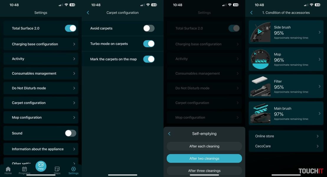 Conga 12090 využíva mobilnú aplikáciu Cecotec. Svoj účel plní, hoci, osobne by som ju zjednodušil a zmodernizoval. Niektoré časti aplikácie môžu byť v slovenčine, modul aplikácie pre vysávač je v angličtine.