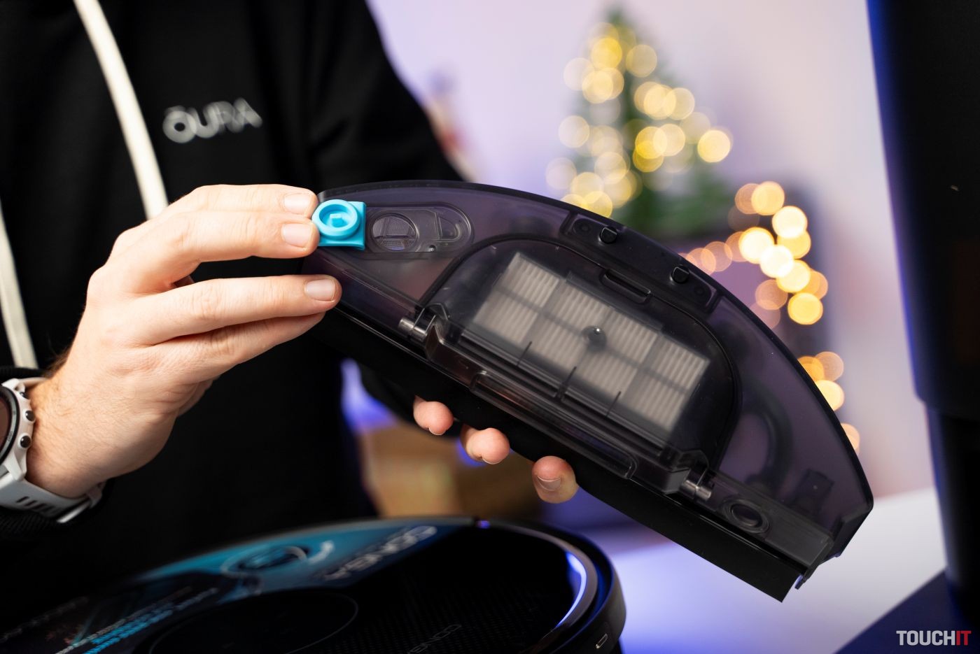 Robotické mopovanie pomocou valca funguje dobre a spoľahlivo. Mopovanie je rovnomerné a valec sa počas upratovania neustále čistí a zároveň sa vlhčí – pozrite si fotku spodnej časti vysávača. Následne sa v dokovacej stanici špinavá voda vypustí do nádobky na špinavú vodu a načerpá sa nová čistá voda. Na oba účely je v dokovacej stanici určená zdieľaná nádoba s dvoma časťami.