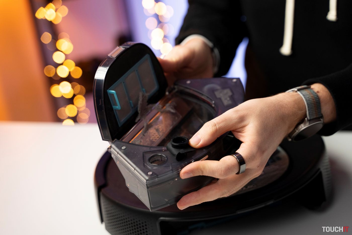 Dokovacia stanica ponúka funkciu automatického vyprázdňovania, čo je výborná vec. Táto funkcia fungovala spoľahlivo, vrecko v stanici má objem 3 litre. Dokovacia stanica neobsahuje plastovú podložku, takže je vhodné, aby ste po skončení mopovania čo najskôr odstránili mopovaciu podložku z vysávača. Modré svetlo na dokovacej stanici nie je možné vypnúť a svieti aj v noci.