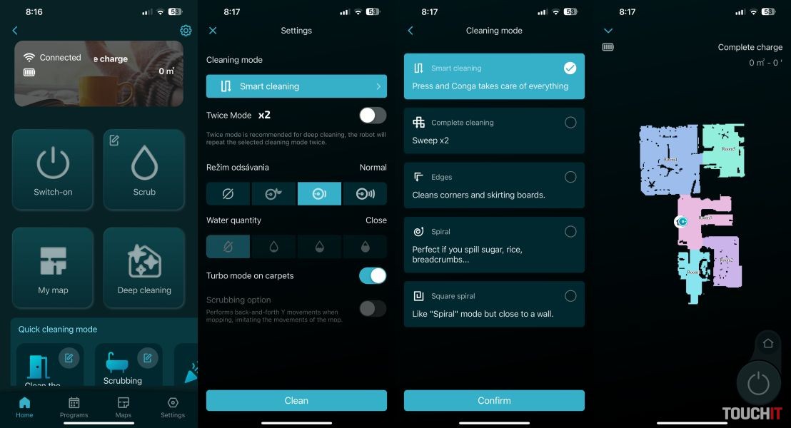 Aplikácia Cecotec ponúka všetky potrebné funkcie. Viete si nastaviť harmonogram vysávania, spravovať mapu domácnosti (k dispozícii je podpora pre viaceré poschodia), nastaviť si režimy vysávania aj mopovania.