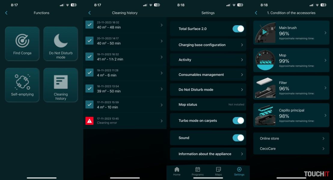 Conga 8290 využíva mobilnú aplikáciu Cecotec. Snaha je, aby bola dostupná kompletne v slovenčine, avšak aktuálne tam ešte nie sme. Základ aplikácie je síce preložený do slovenčiny, avšak moduly pre samotné robotické vysávače sú zatiaľ v cudzom jazyku. Počas testovania som ich mal v angličtine.