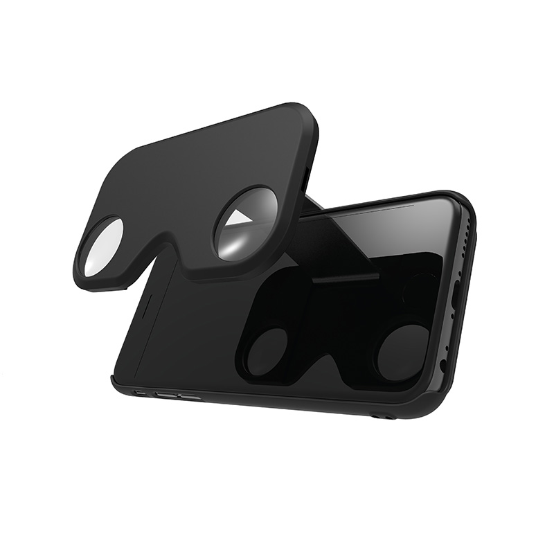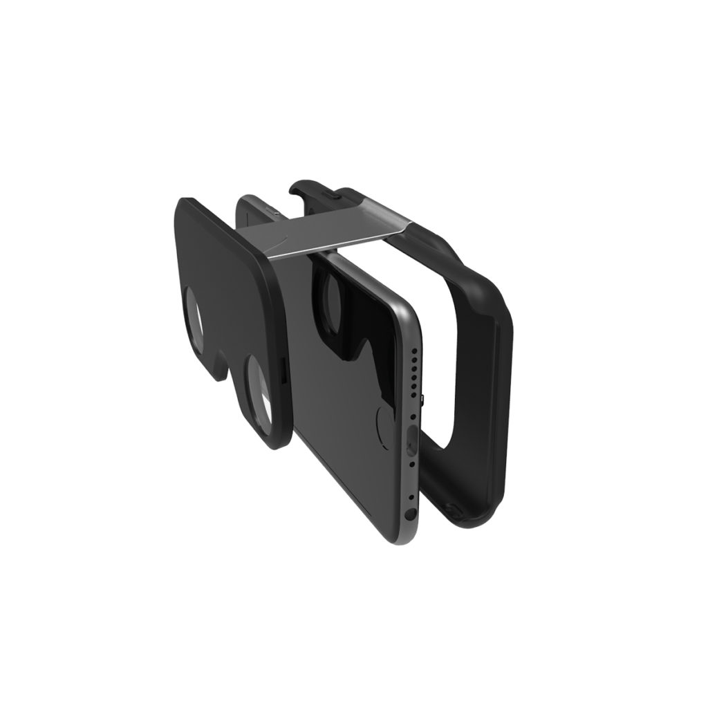 Koncept príslušenstva je jednoduchý. Výrobca rozšíril klasický ochranný obal o VR okuliare, ktoré sú umiestnené na chrbte obalu, resp. smartfónu. Ich dizajn je zameraný na kompaktné rozmery, takže obal má hrúbku iba 5 – 6 mm nad rámec hrúbky telefónu. Telo okuliarov je súčasťou obalu a v prípade potreby ich viete „rozložiť“ do prevádzkového stavu. Stačí ich uvoľniť dvoma posuvnými tlačidlami po bokoch obalu.