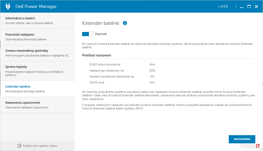 Dell XPS 13 je rekordman vo výdrži a my sme sa dostali 9,5 hodiny benchmarku. Jas displeja bol nižší a zapli sme mierne šetriaci režim. Reálna práca, počas ktorej sme upravovali jas a menili aj spôsob zaťaženia notebooku nám dala spoľahlivých 7 hodín práce. Vlastne sme nepotrebovali ani nabíjačku. Navyše tu máte nástroj Power Manager na správu batérie a energetických profilov.