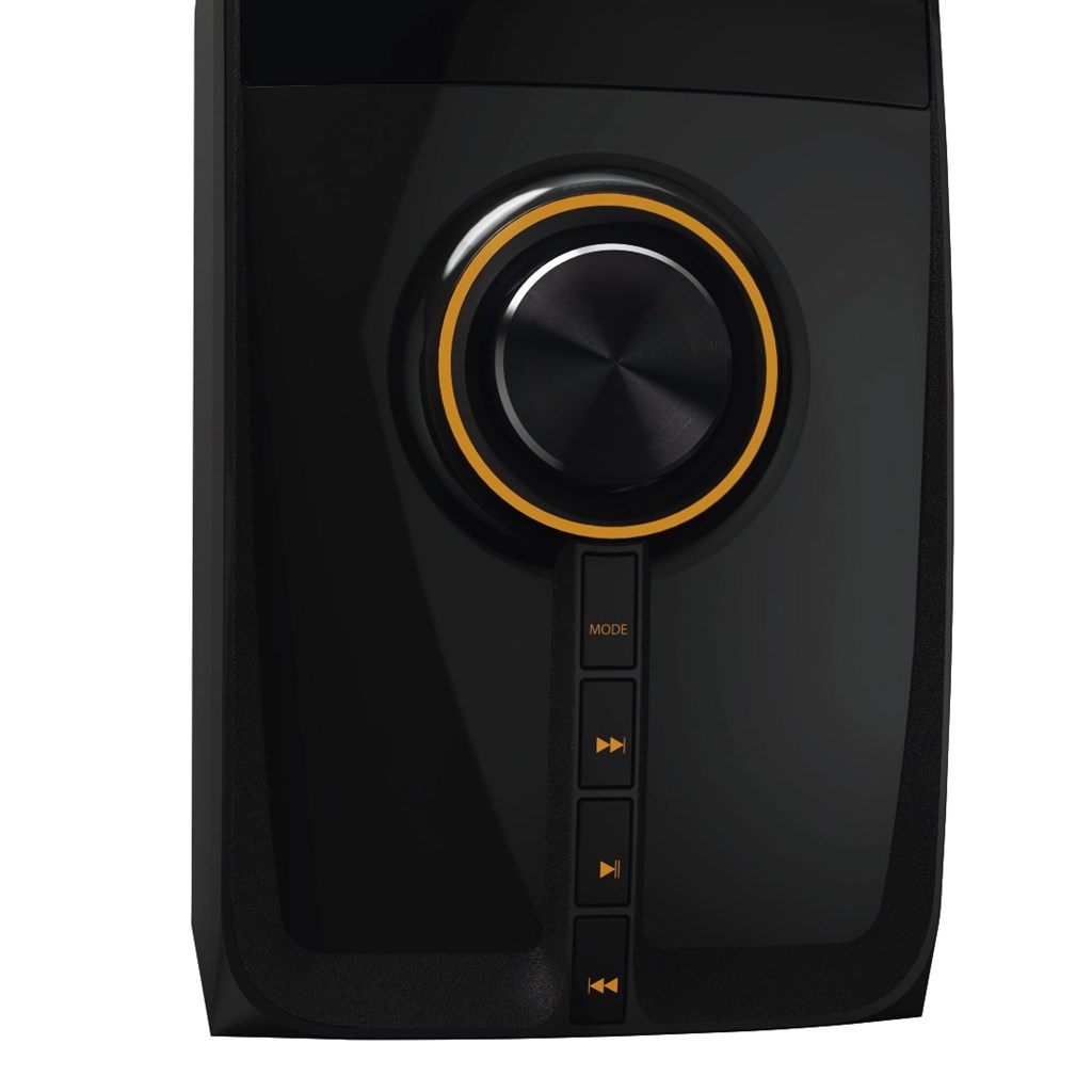 Spôsob reprodukcie sa nastavuje na ovládači. Zostava s ním počíta a využijete ho nielen pri prepínaní vstupov, ale aj hľadaní staníc FM rádia, prepínaní staníc a ovládaní hudby, ak to vstupné zariadenie podporuje. Pozastavenie a prehrávanie podporuje aj spojenie cez Bluetooth a Windows 10 pri prehrávači Spotify.