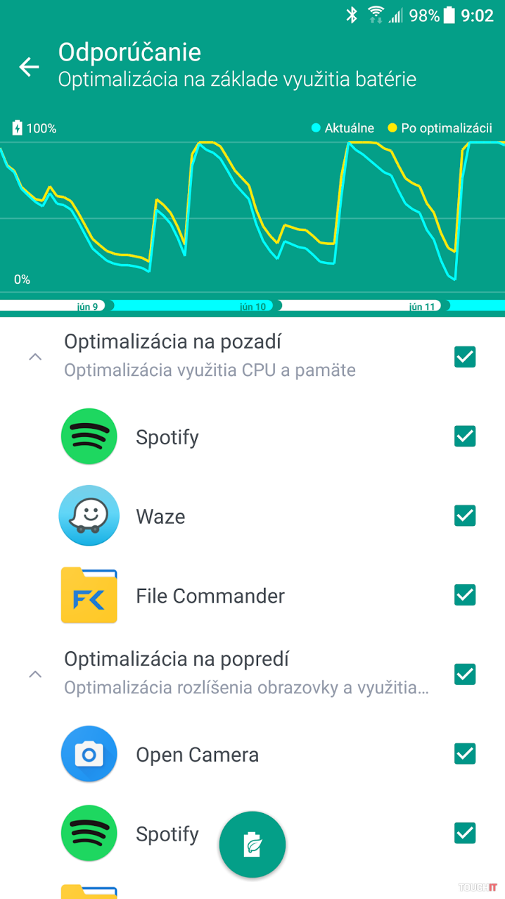 Výdrž batérie obvykle pokryje 1 bežný deň. Keď sme telefón používali menej často, vydržal 2 dni. Na pravej fotke možnosti optimalizácie pomocou systémového nástroja Boost+