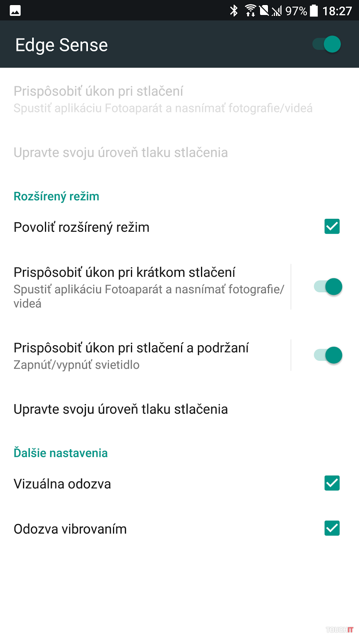 Možnosti nastavenia funkcie Edge Sense