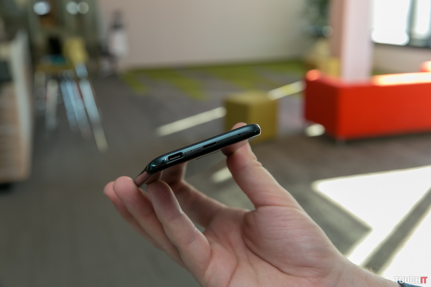 Bočné hrany obsahujú tlačidlá na reguláciu hlasitosti a napájanie. Telefón má vo výbave USB-C konektor, slot na microSD kartu a nano SIM kartu. 3,5 mm jack však nenájdete, čo je škoda. Poteší odolnosť IP67, ktorá sa začína objavovať čoraz častejšie.