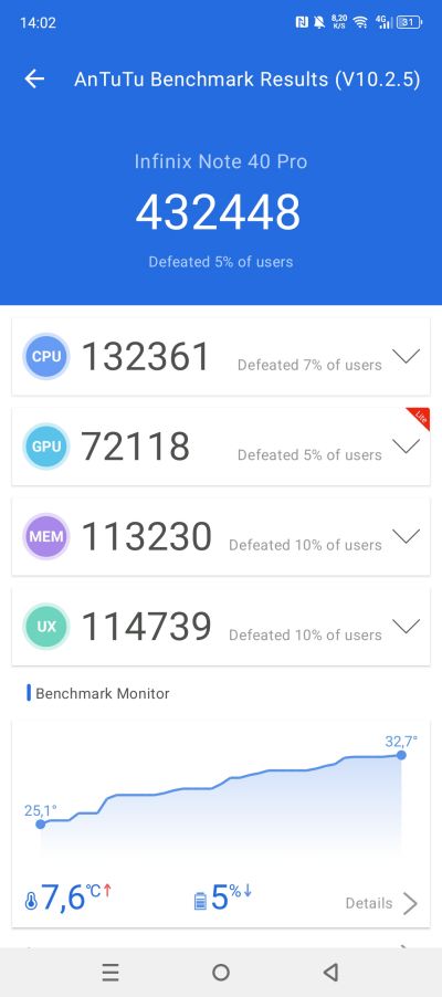 Benchmarkové testy modelu Infinix Note 40 Pro tiež nedopadli najhoršie. Zariadenie som testovala vo viacerých benchmarkových aplikáciách ako je Geekbench 6, PCMark, 3DMark aj AnTuTu a na dosiahnuté výsledky sa môžete pozrieť nižšie.