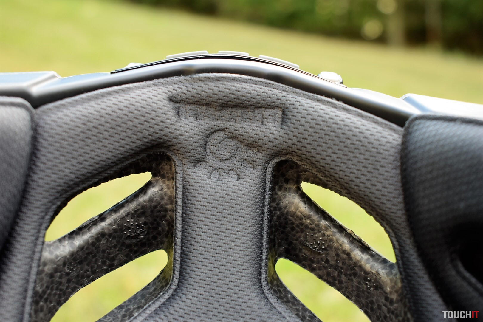 Keď si otočíme prilbu zospodu, tak sa nám naskytne pohľad na multimediálné centrum, kde v prednej časti prilby nájdeme gumené tlačidlá na zapnutie a vypnutie svetelnej signalizácie, príjem hovoru a reguláciu hlasitostí zvukov prehrávaných v integrovaných reproduktoroch, ako aj ovládanie voľby skladieb. V tomto module sa nachádza ešte mikrofón a MicroUSB vstup pre nabíjanie. Všetko je dobre izolované pred vstupom vody a potu.