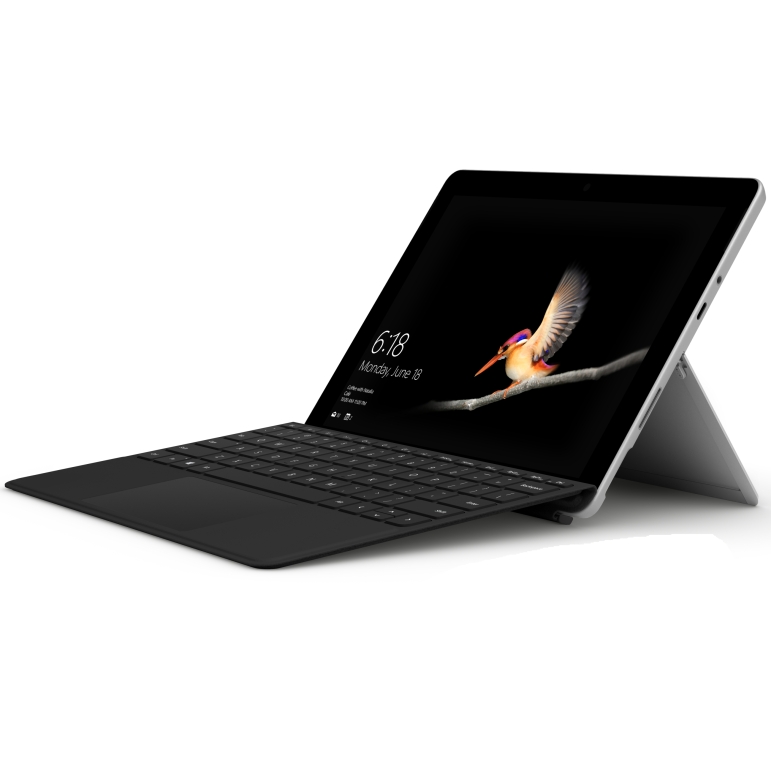 Zariadenie sa predáva samostatne, po dokúpení ochranného krytu s klávesnicou a touchpadom sa premení na malý notebook. Surface Go teda môžeme z určitého hľadiska považovať za nástupcu netbookov a v porovnaní s nimi ponúka citeľne vyšší výkon a lepšiu výdrž batérie. Na Surface Go sa môžeme pozerať dvoma spôsobmi. Ako na tablet alebo ako na malý notebook, ktorý v prípade potreby použijete aj v tabletovom režime. Pre väčšinu používateľov bude atraktívnejší práve druhý spôsob použitia, hoci, možno sa nájde aj niekto, komu bude vyhovovať Surface Go samostatne. Zážitok z používania operačného systému Windows 10 v tabletovom režime však stále nie je optimálny a pochybujeme, že sa niekedy v tomto smere vyrovná Androidu alebo iOS. Na sledovanie filmov a počúvanie hudby je Surface Go výborný aj samostatne, pri ostatných činnostiach vám však bude chýbať klávesnica a myš alebo touchpad. Rozhranie systému totiž nie je optimálne prispôsobené pre dotykové ovládanie. Surface Go je tiež viditeľne hrubší v porovnaní s bežnými tabletmi. V kombinácii s ochranným krytom s klávesnicou a touchpadom sa zo Surface Go stáva prekvapujúco šikovný prístroj, ktorému by mohol niekto v režime notebooku vytknúť prakticky iba menšiu uhlopriečku displeja. Vďaka nej je však zariadenie malé a dobre prenosné. Pohodlne ho môžete nosiť aj v kabelke – do väčších kabeliek zmestíte aj bežné notebooky, avšak Surface Go sa s hmotnosťou iba 520 gramov, resp. 770 gramov s ochranným krytom s klávesnicou, prenáša o poznanie pohodlnejšie. Výhodu menších rozmerov sme ocenili pri cestovaní vo vlaku či v lietadle, Surface Go sa dá používať prakticky kdekoľvek.Model | Microsoft Surface Go |