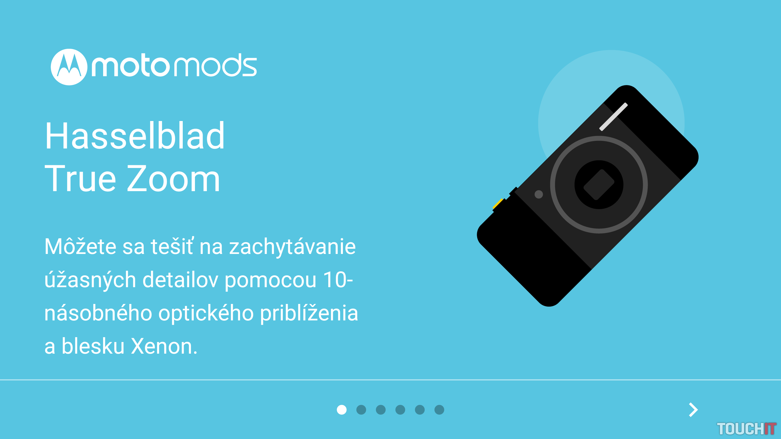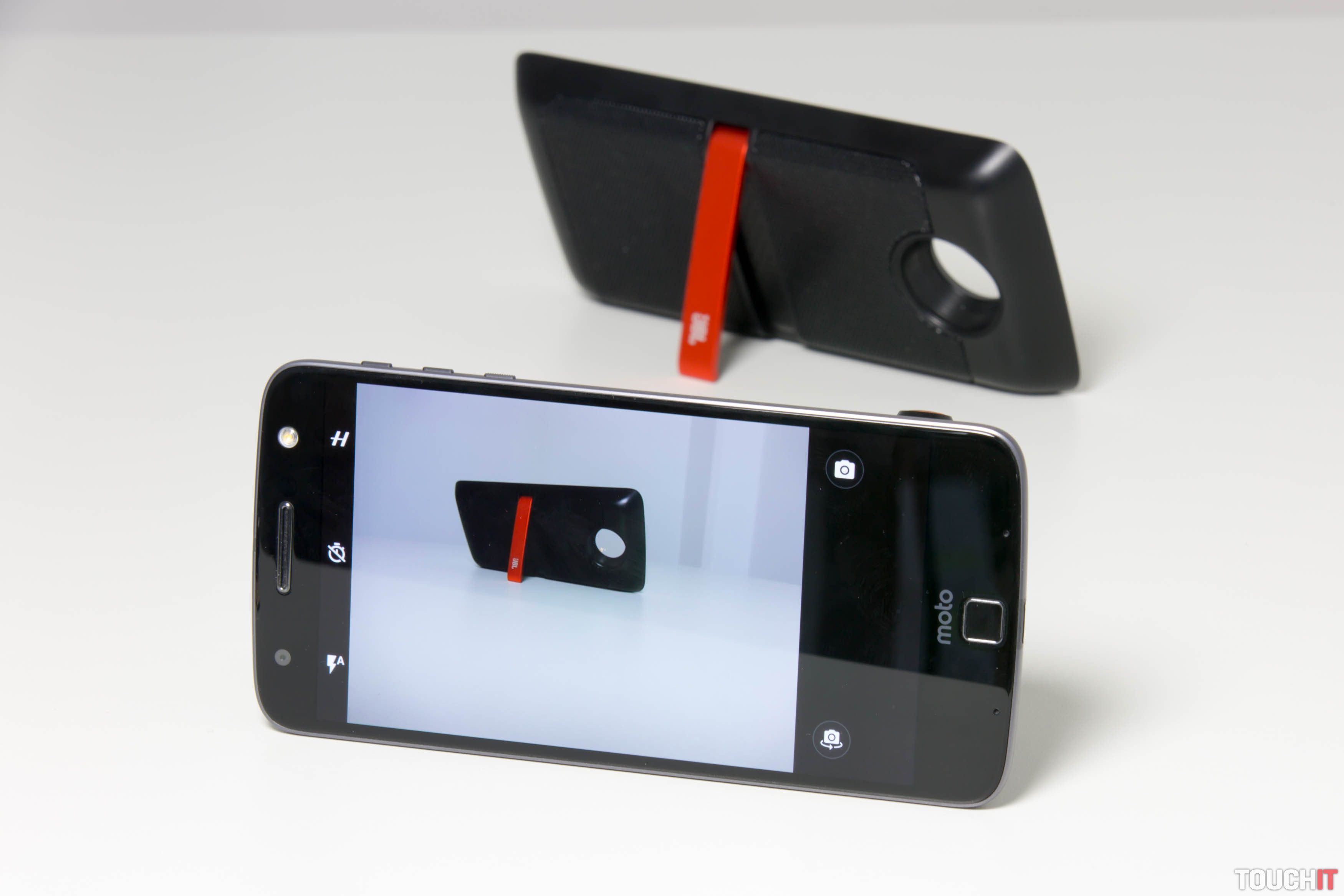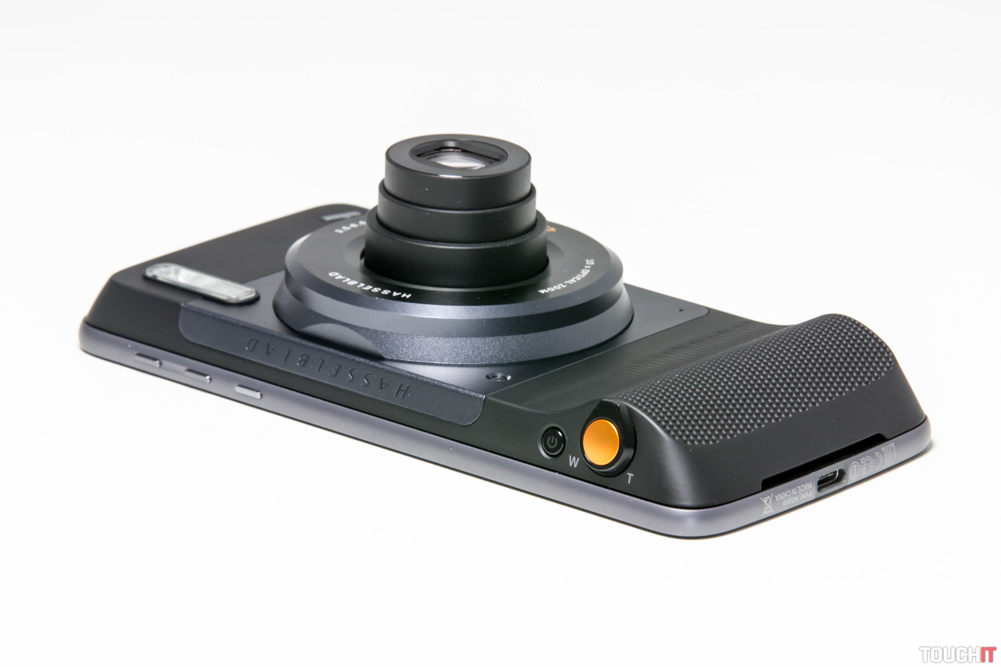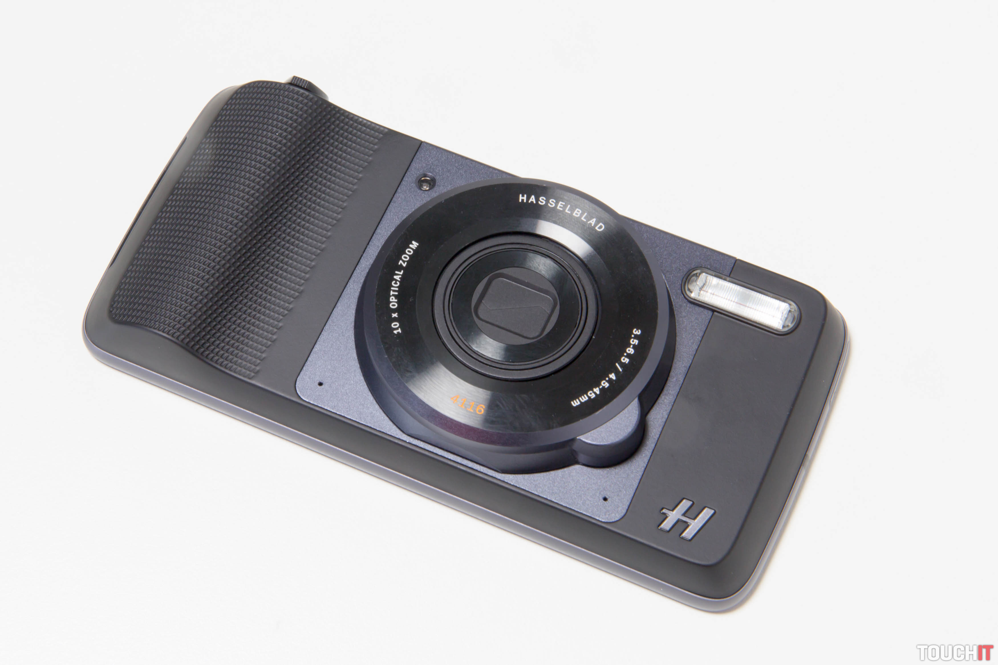 Špecialitou je modul Hasselblad True Zoom. Ten rozširuje fotoaparát v telefóne o xenónový blesk a 10-násobný optický zoom. Z pohľadu smartfónu získate bezkonkurenčnú výbavu, ale zrkadlovku vám Moto Z s Hasselblad modulom nenahradí. Optický zoom je výborná funkcia, treba si však uvedomovať jej limity. Pri fotení statických objektov využijete priblíženie naplno, v prípade pohyblivých objektov je problém fotiť fotografie tak, aby neboli rozmazané – s tým však má pri priblížení problém väčšina klasických fotoaparátov, treba použiť zrkadlovku. V praxi sme si to vyskúšali na módnej prehliadke. Modul stojí 299 eur.