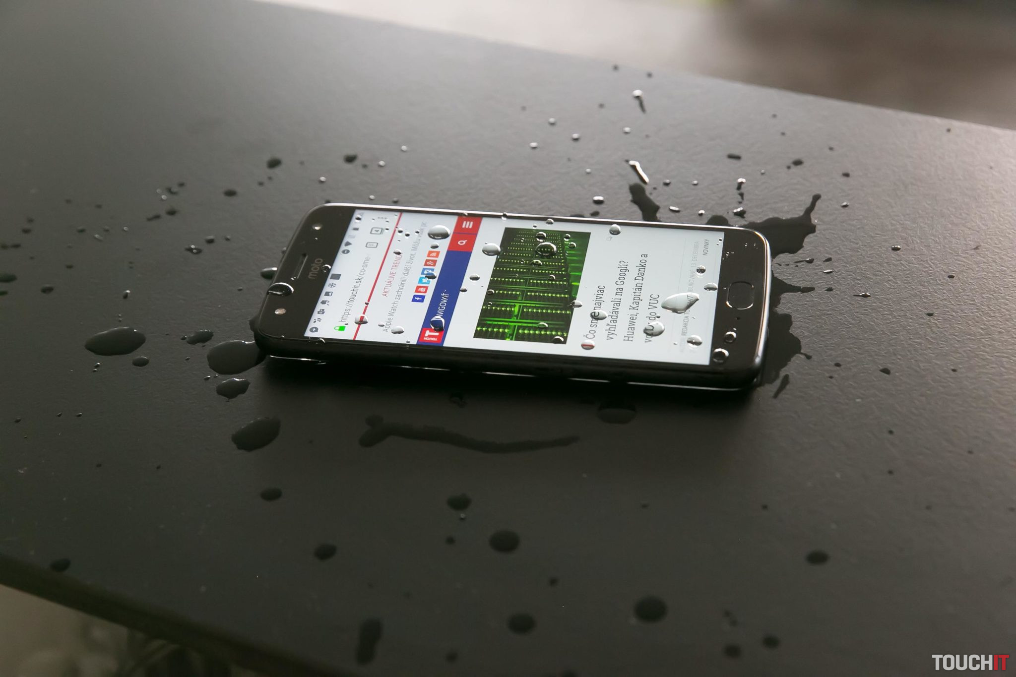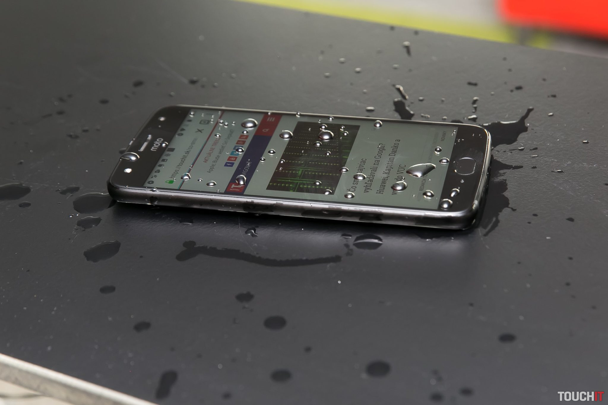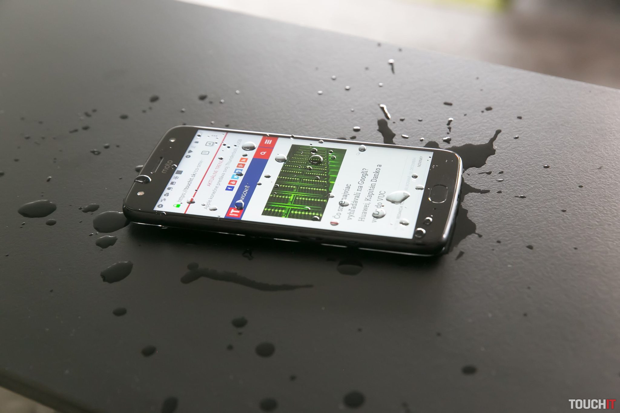Pod displejom je štandardne snímač odtlačkov, ktorý je zároveň ovládacím prvkom systému. Podporuje gestá a tak na základe dotykov nahradí virtuálne tlačidlá. My sme Moto X4 ovládali takto. Kto chce, môže si ponechať štandardné ovládacie tlačidlá Androidu. Telefón vyzerá ako z jedného celku. Tento dojem je správny a je to preto, lebo má certifikáciu IP68. Sami sme sa presvedčili, že sa telefónu nič nestalo, keď bol ponorený vo vode takmer hodinu. Avšak nie v maximálnej hĺbke 1,5 pre túto certifikáciu.