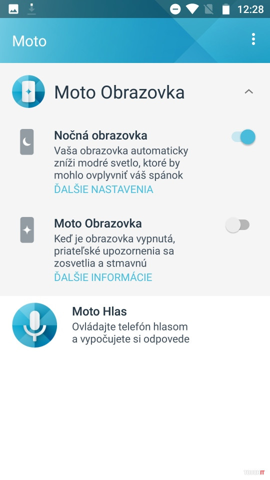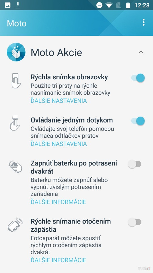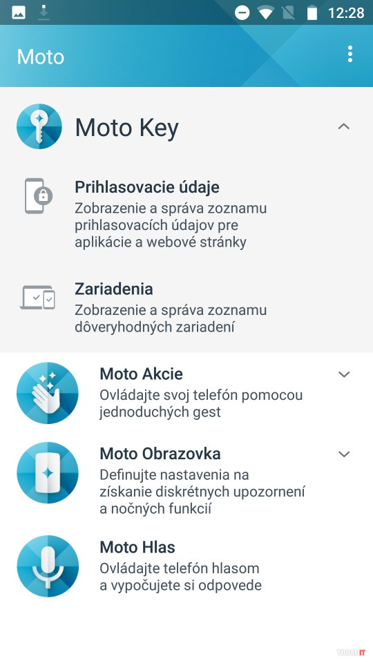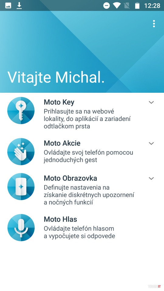 Nebudeme sa tu rozplývať o čistom Androide. To už je v prípade série Moto samozrejmosťou a vy všetci viete, čo to znamená. Je to síce absencia niektorých špecializovaných aplikácií, ktoré dávajú výrobcovia v rámci svojej nadstavby. Je to ale zároveň čistý systém,v ktorom nemáte duplicity aplikácií a ľahko si nainštalujete tie, čo potrebujete. V tomto prípade to vidíme tak, že keď sa vám tento model páči, prijmete ho tak, ako je a vyťažíte z neho maximum. Páčilo sa nám, že je tu aj niečo špeciálne. Konkrétne Bluetooth funkcia, ktorá pripojí k Moto X4 až štyri zvukové zariadenia. Môžete tak streamovať hudbu do štyroch reproduktorov či slúchadiel naraz. Podobne ako pri systémoch multi-room. Úplne holý systém to ale nie je a je tu nadstavba Moto Akcie, Obrazovka, Hlas a Key. Posledná je super vec a je to vlastne novinka, s ktorou toto rozšírenie prichádza. Nejde o žiadne nežiaduce zásahy do systému. Využíva viac snímače a hardvérové funkcie, ktoré už v telefóne máte. Napríklad podporuje nahradenie virtuálnych tlačidiel za gestá na snímači pod displejom. Tento spôsob poznáme aj zo série G a je to niečo, čo sa nám páčilo. Opäť zdôrazňujeme, že tento spôsob ovládania sa treba naučiť, ale potom získate celú obrazovku. Nebude sa na nej objavovať riadok s tlačidlami. Gestá sa dajú prispôsobiť pre pravákov a ľavákov. Moto Hlas je fajn, ak sa chcete s telefónom rozprávať po anglicky alebo v inom podporovanom jazyku. Slovenčina zatiaľ na programe nie je. Moto Obrazovka zase zobrazuje upozornenia na vypnutom displeji. Teda na chvíľu ho rozsvieti, ak máte novú udalosť alebo prejdete rukou nad telefónom. Aplikácie sa odtiaľ dajú aj ovládať. Toto sme vypli, snímač priblíženia reagoval na rôzne pohyby okolo nás, aj na periférne pohyby, keď bol telefón na stole. Súčasťou Moto Obrazovka je funkcia na eliminovanie modrého svetla, ktorá vám pomáha zaspať a večer menej unavuje oči.