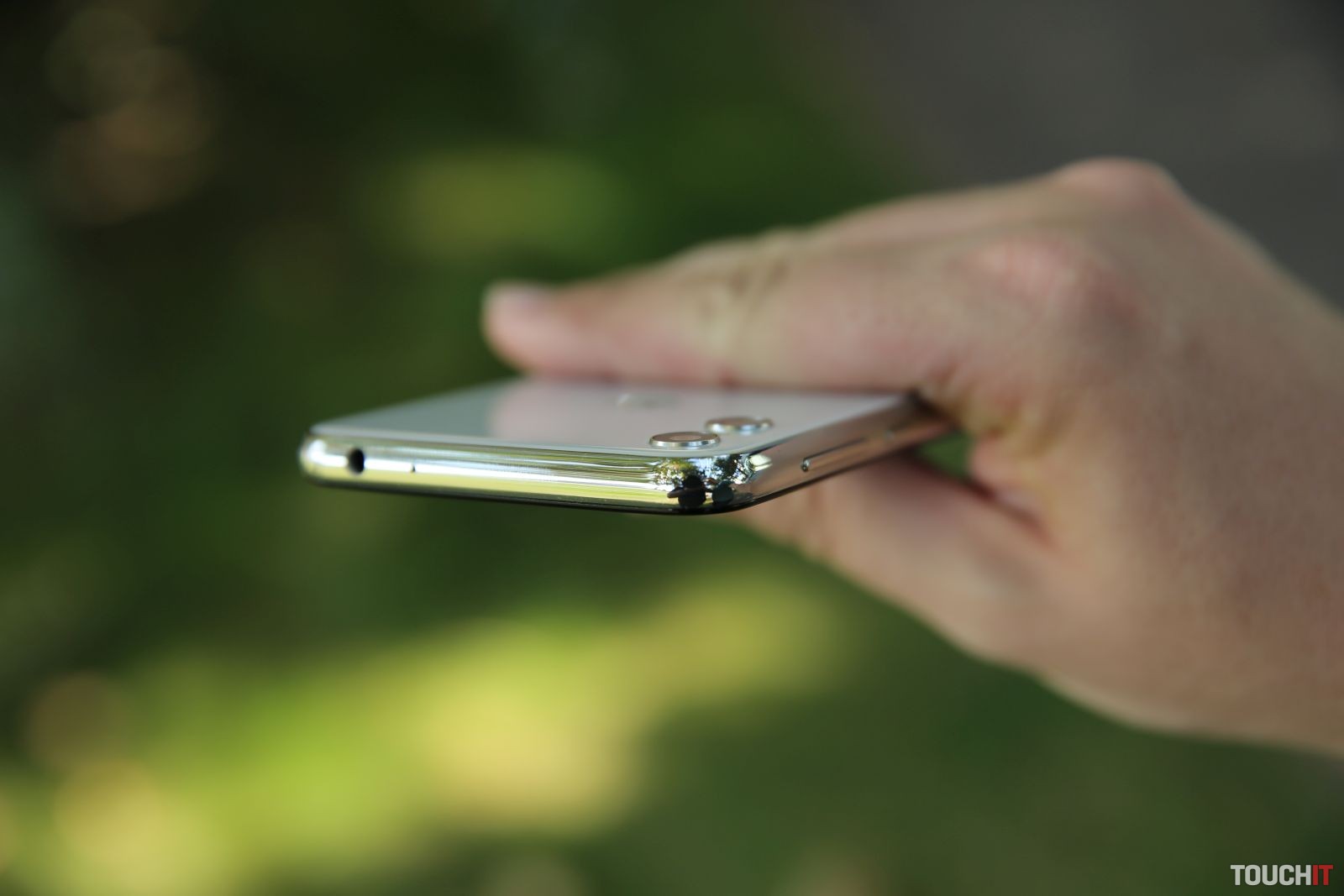 Dizajn prednej strane neprekvapí, trochu by sme však zmenšili rámik pod displejom a stenčili aj výrez v displeji. Kvôli nemu je výrazne obmedzený priestor pre notifikácie, do horného riadku sa zmestí prakticky iba jedna ikona s upozornením. Telefón však potešil svojou kompaktnosťou a nízkou hmotnosťou, dobre sa bude používať aj v menších rukách. Jeho rozmery sú 150 × 72 × 8 mm, hmotnosť je 162 gramov.