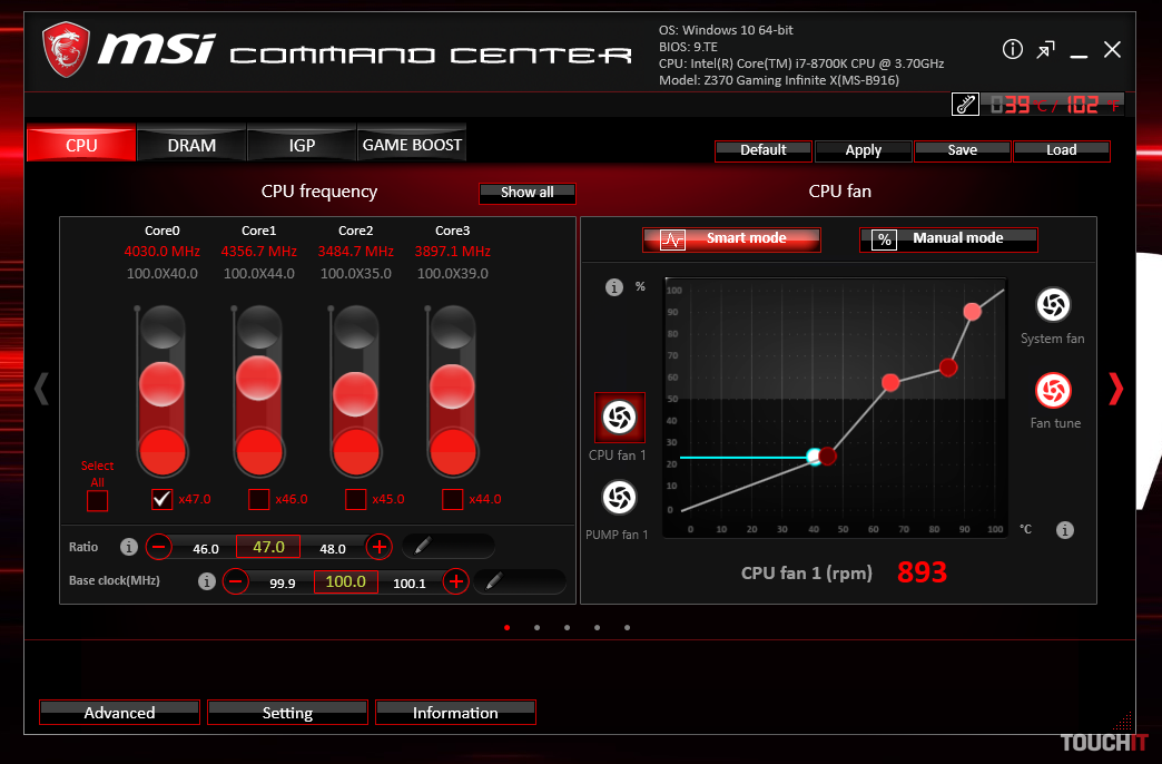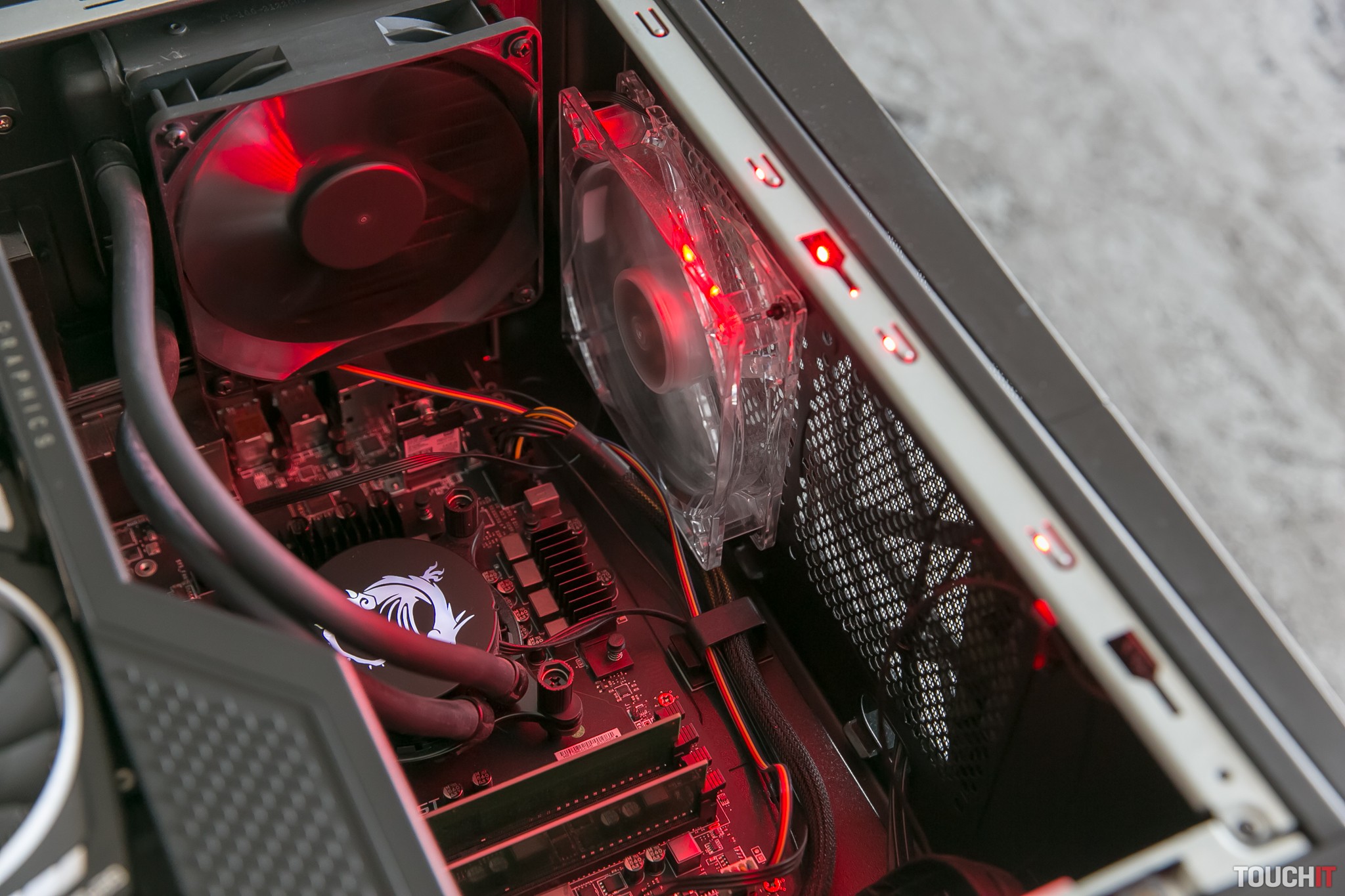 Obe riešenia majú svoje výhody a nevýhody, je však fajn, že výrobcovia myslia aj na hráčov, ktorí chcú maximálny výkon v predpripravenej forme. Presne tomuto segmentu je určený počítač MSI Infinite X, ktorý sme testovali v jeho najvýkonnejšom prevedení. Srdcom počítača bol v nami testovanej konfigurácii procesor Intel Core i7-8700K so 6 jadrami a frekvenciou 3,7 GHz. Dopĺňala ho operačná pamäť o veľkosti 16 GB RAM značky Kingston a najmä grafická karta NVIDIA GeForce GTX 1080 Ti s 11 GB video pamäte vo verzii MSI GTX 1080 Ti ARMOR OC. Počítač tiež ponúkal 512 GB SSD disk a 2 TB pevný disk Seagate. Nechýba ani optická mechanika, ktorá je nenápadne schovaná v skrinke, avšak ide iba o DVD mechaniku. Pokiaľ by ste teda chceli pozerať Blu-ray filmy, zabudovaná mechanika vám nebude postačovať. Pre ostatné účely je viac ako vhodná. O napájanie sa stará 550 W zdroj s certifikáciou 80 Plus Bronze, základná doska je MSI Z370M GAMING PRO AC (MS-7B44).