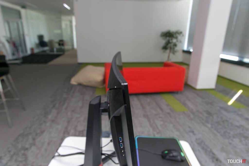 Monitor má tenké rámiky okolo displeja z troch strán, čo sa zíde nielen pri vytváraní viacmonitorových zostáv. Pri kombinovaní 3 týchto monitorov tiež oceníte už spomenuté zaoblenie – výsledok pôsobí prirodzenejšie, ako keď dáte vedľa seba 3 ploché obrazovky. Zaoblenie je na úrovni 1800R, ide o štandardnú hodnotu.