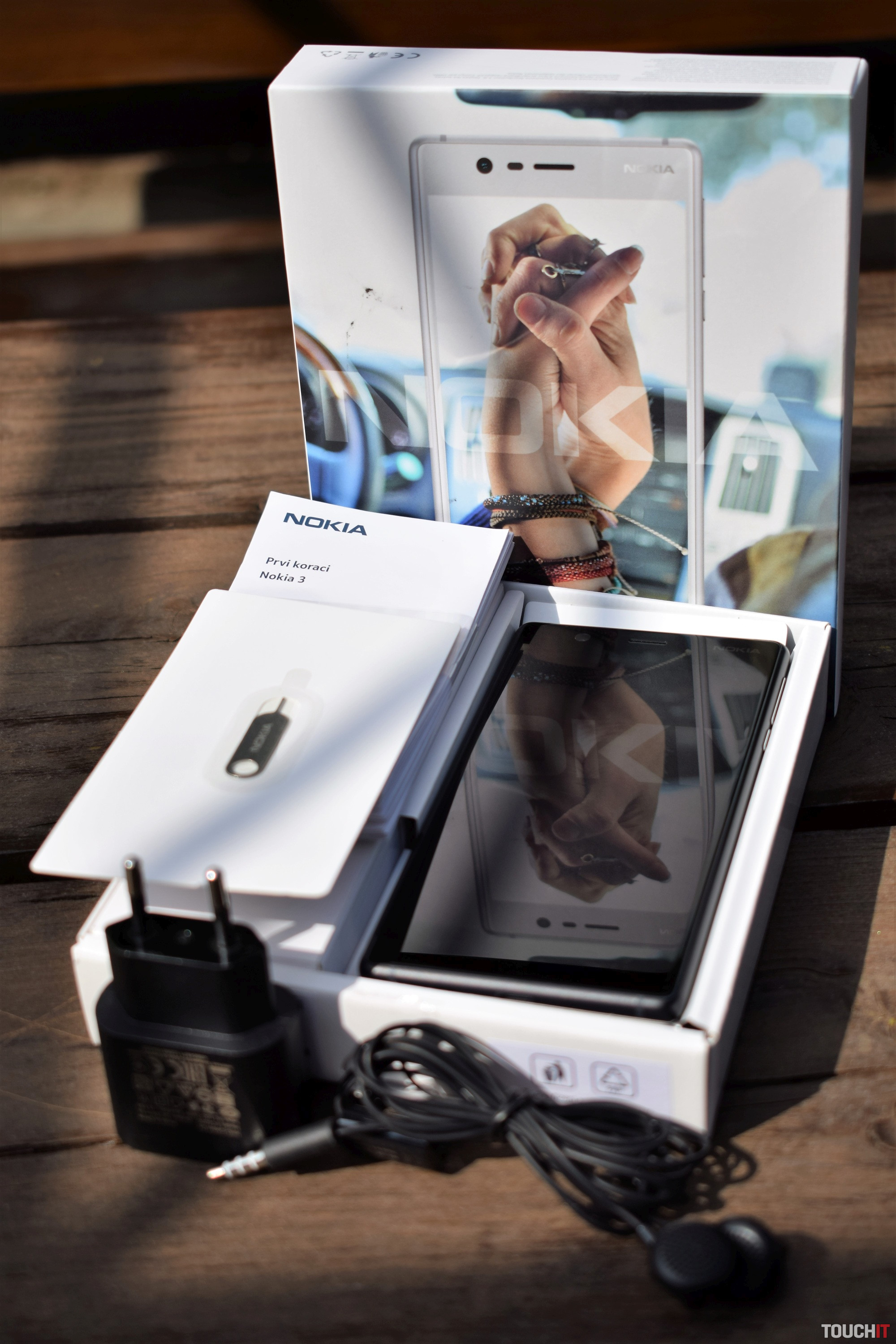 Trojka nás zaujala, ale aj v segmente, v ktorom sa bude snažiť uspieť, má konkurencia miestami trochu navrch. Hlavne tá rýdzo čínska. Nokia 3 k nám dorazila v štvorcovej krabičke a v nej nájdete všetko potrebné. Od cestovnej nabíjačky, USB kábla, potrebnej dokumentácie, sponky až po slúchadlá, ktoré sa pravdepodobne ani nebudú primárne využívať.