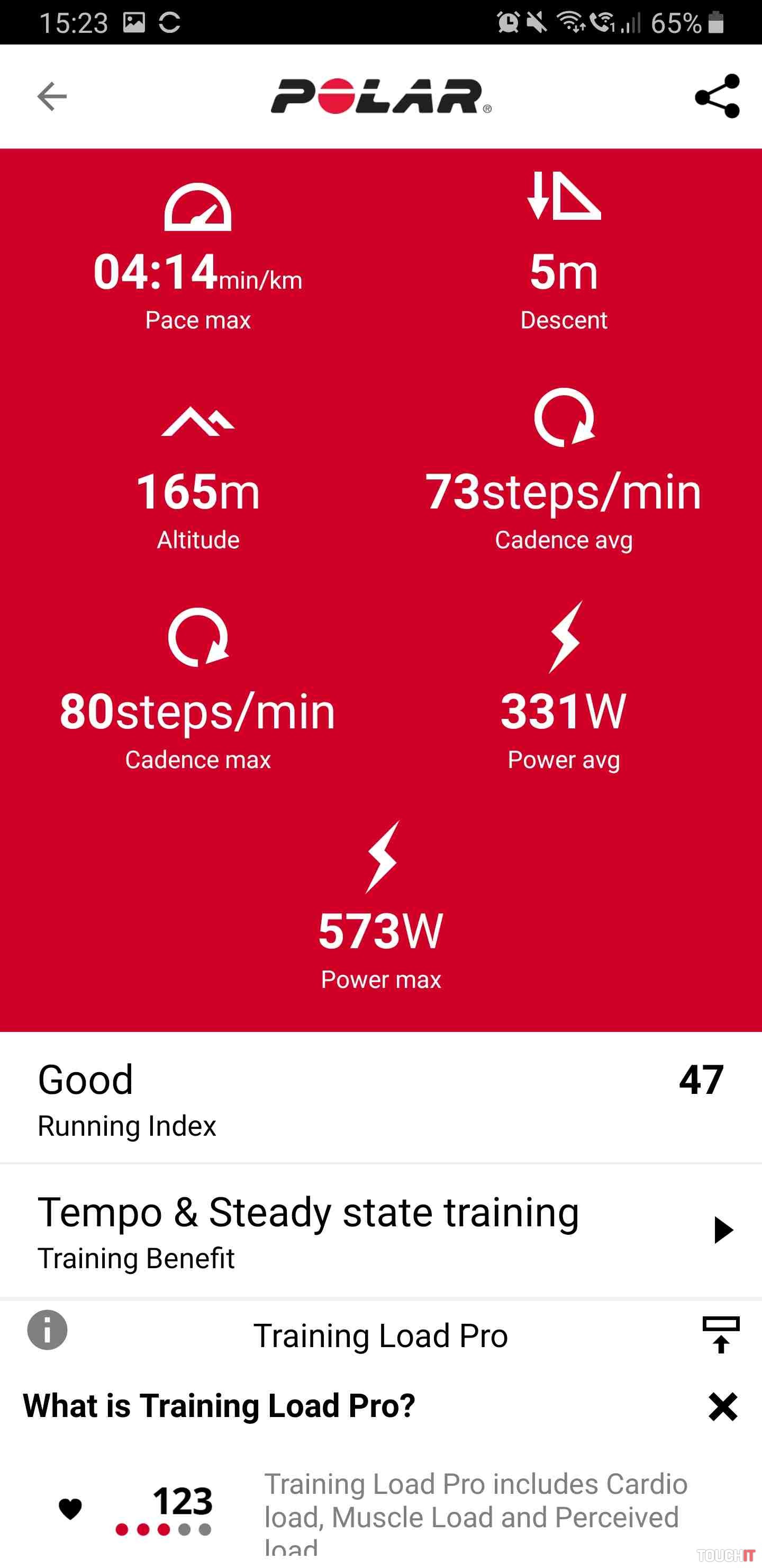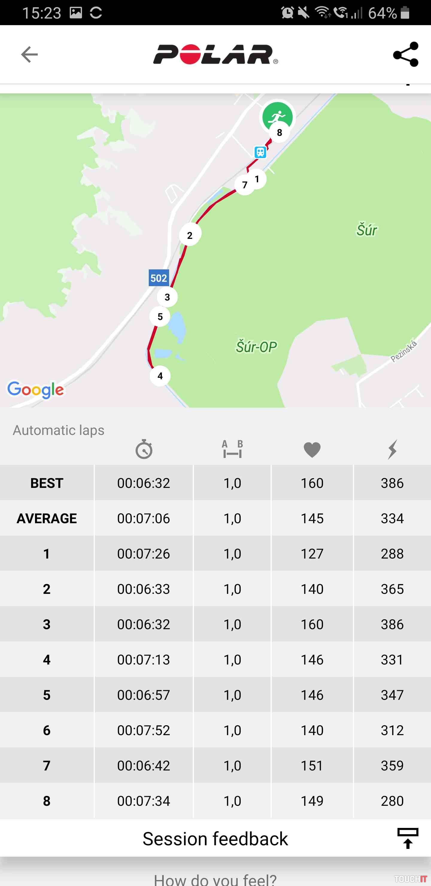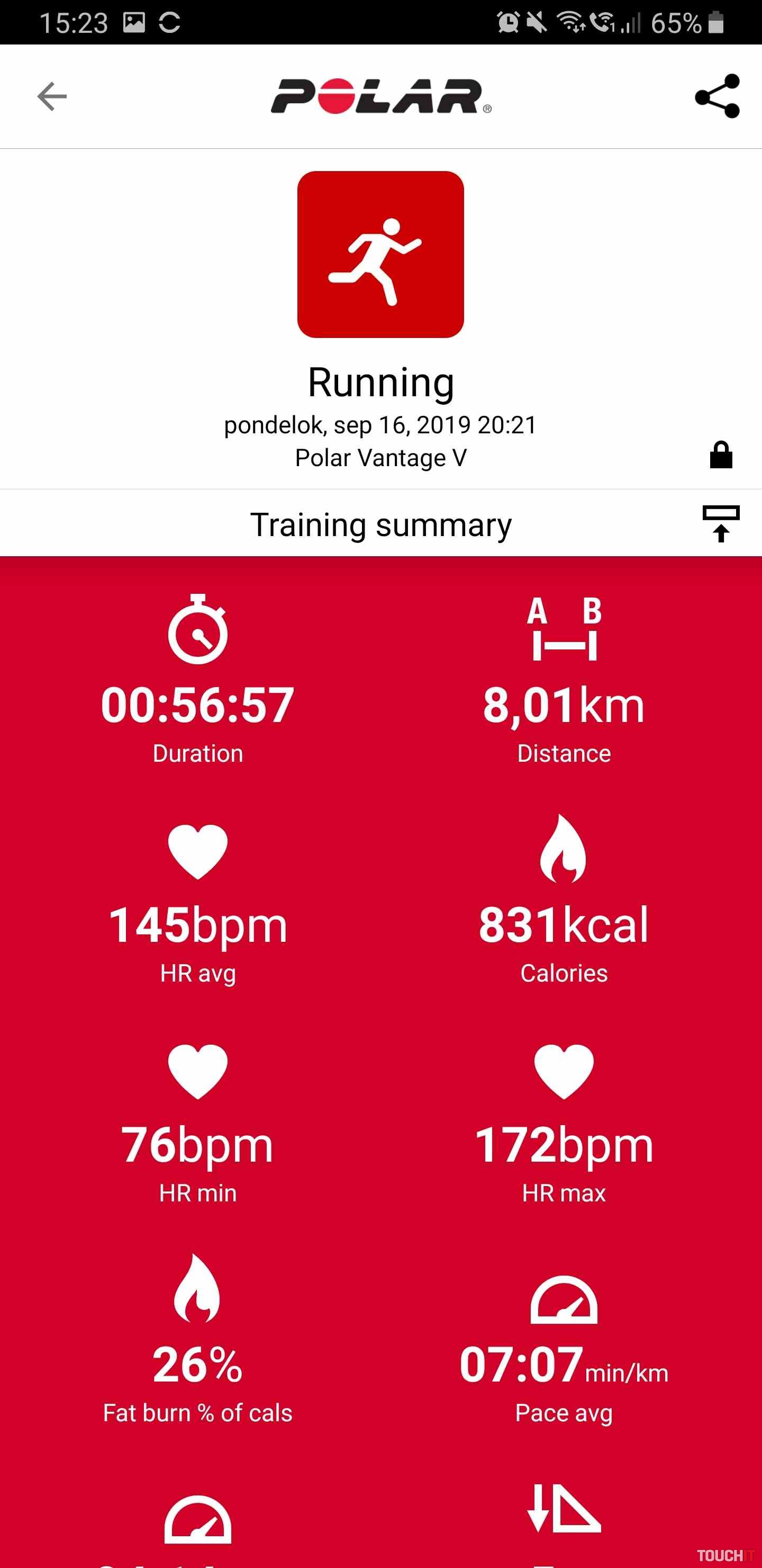 - obrazovka združuje údaje z tréningov