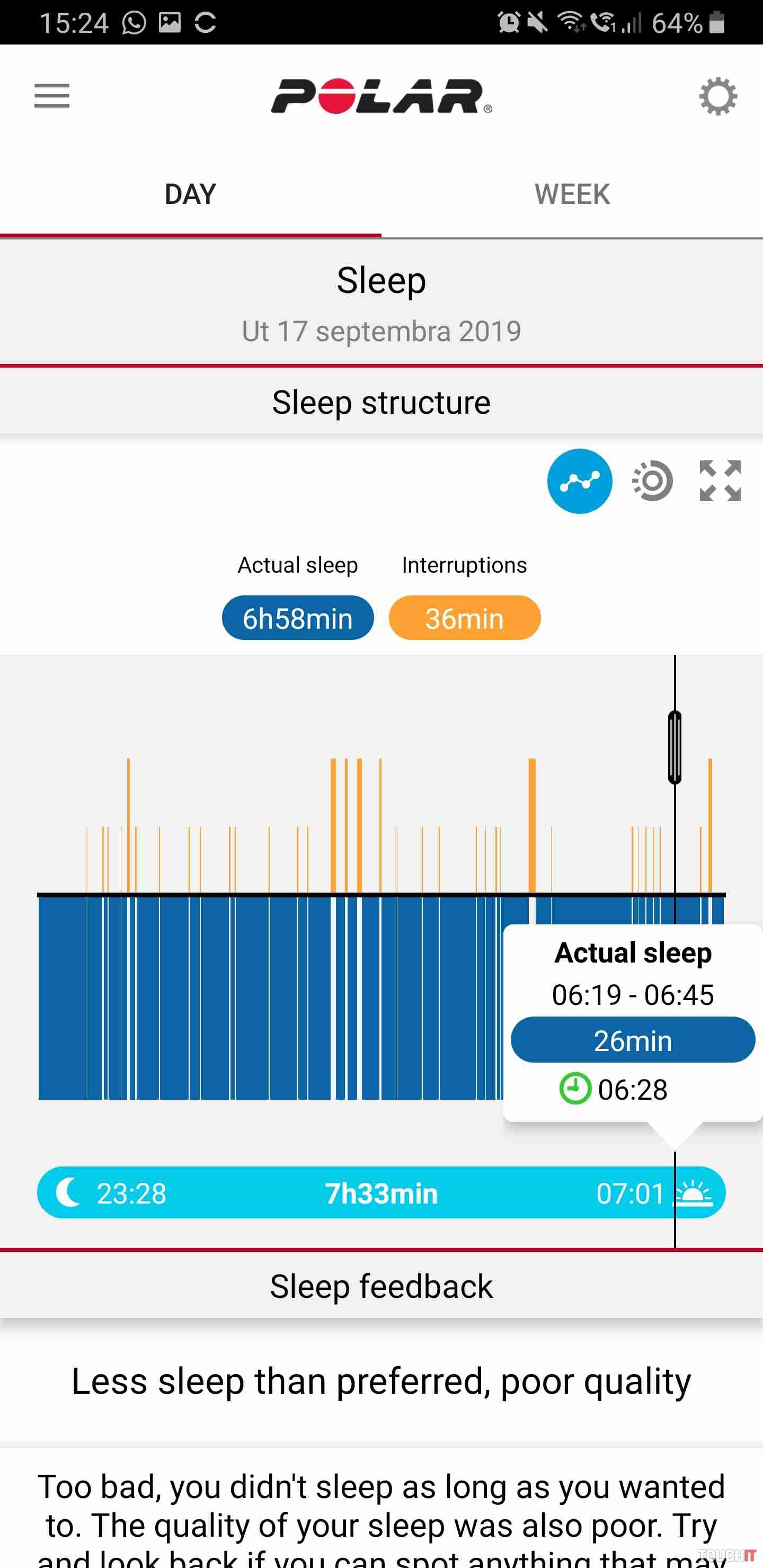 Namerané hodnoty počas dňa alebo noci je možné jednoducho preniesť do mobilnej aplikácie Polar Flow pomocou Bluetooth, alebo do jej web verzie, ktorá sa nám páčila oveľa viac a na účely analýzy tréningu je aj lepšie prezerať tieto hodnoty na veľkom displeji – jednoducho webová verzia je prehľadnejšia. Údaje môžu byť tiež zdieľané do aplikácií tretích strán ako sú Strava, či Training Peaks.Polar Flow ponúka kompletný eko systém a zahŕňa rozšírené plánovanie tréningov a analytické nástroje, automatický tréningový diár, správy o pokroku a veľa ďalšieho. Hodnoty je dokonca možné zdieľať s osobným trénerom, takže aj on hneď získa okamžité údaje o tréningu pomocou bezplatnej služby Polar Flow pre trénerov.Mobilná aplikácia Polar Flow